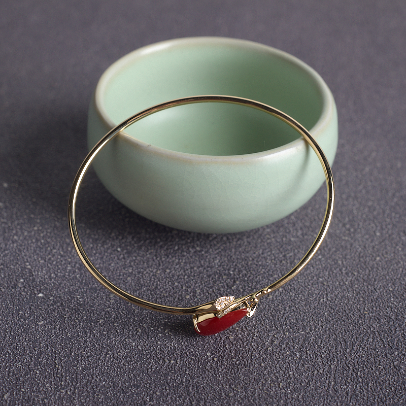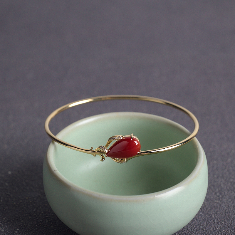 • 57mm18K阿卡牛血红珊瑚水滴手镯