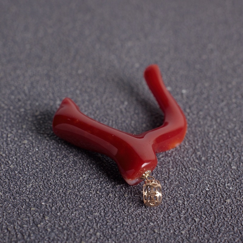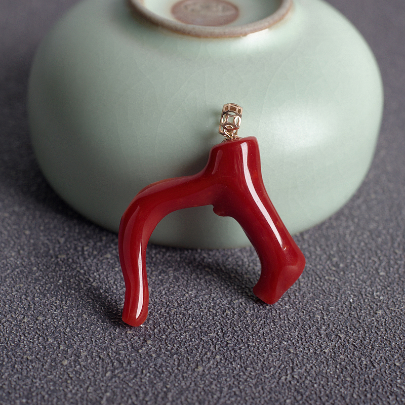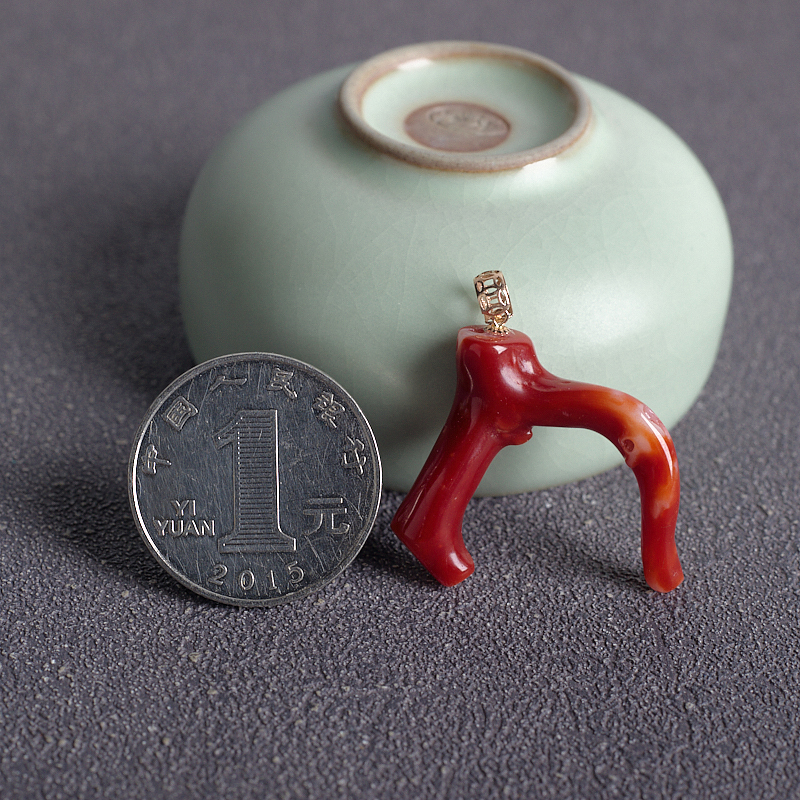 • 18K阿卡牛血红珊瑚树枝吊坠