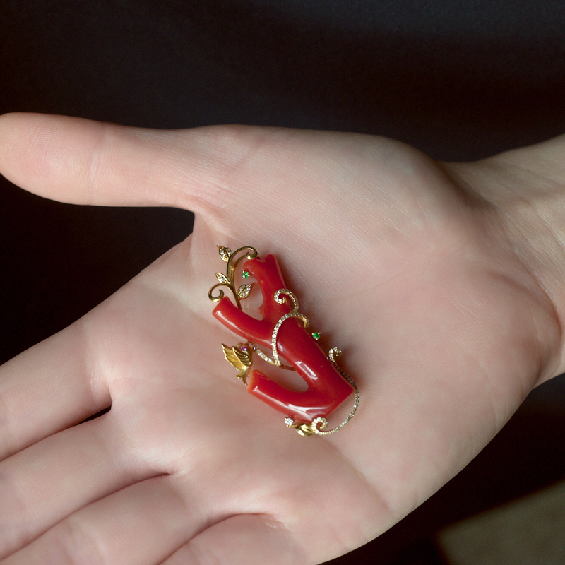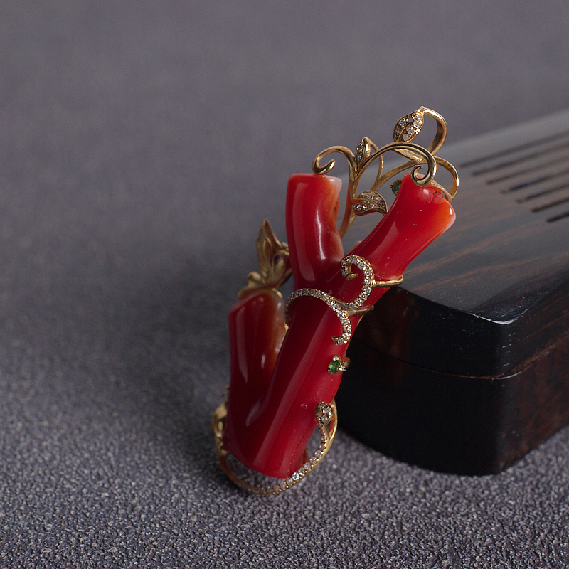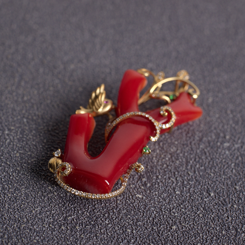 • 18K阿卡牛血红珊瑚树枝吊坠