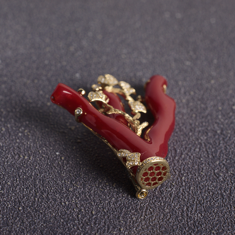 • [名  称] 18K阿卡牛血红珊瑚树枝吊坠/胸针两用款