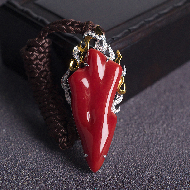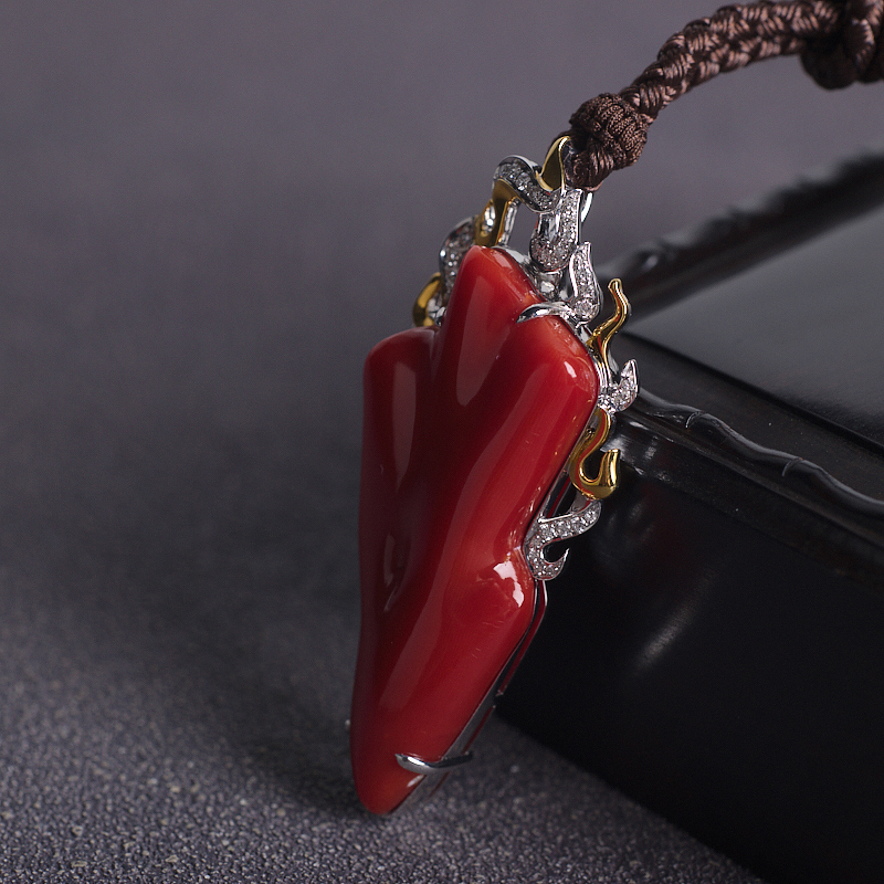 • [名  称] 18K阿卡牛血红珊瑚随形吊坠