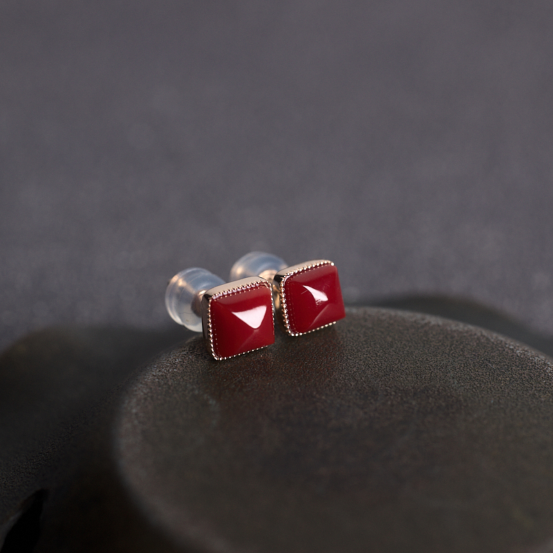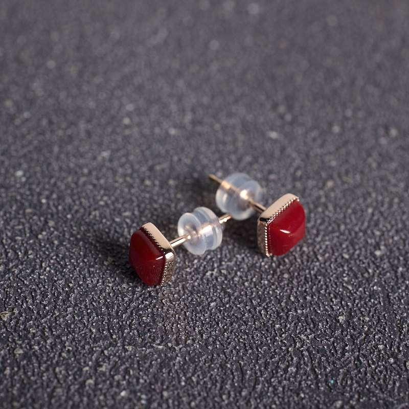 • [名  称] 18K阿卡牛血红珊瑚方形耳钉