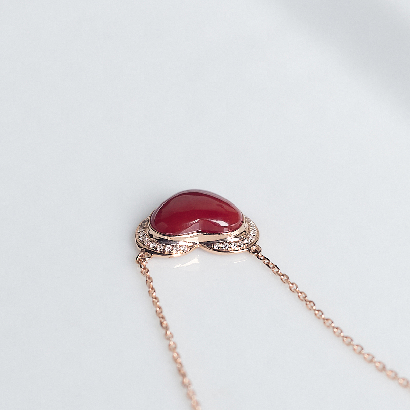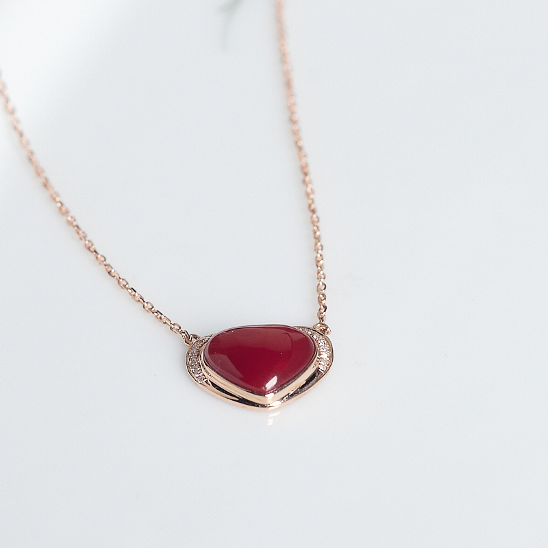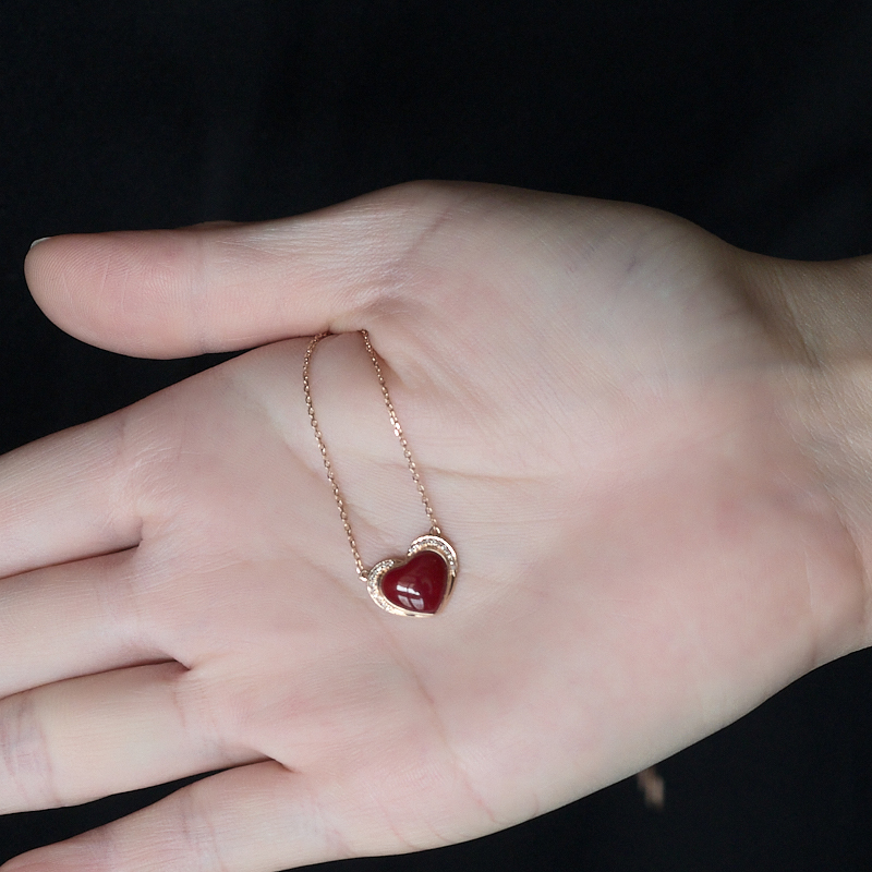 • [名  称] 18K阿卡牛血红珊瑚心形项链