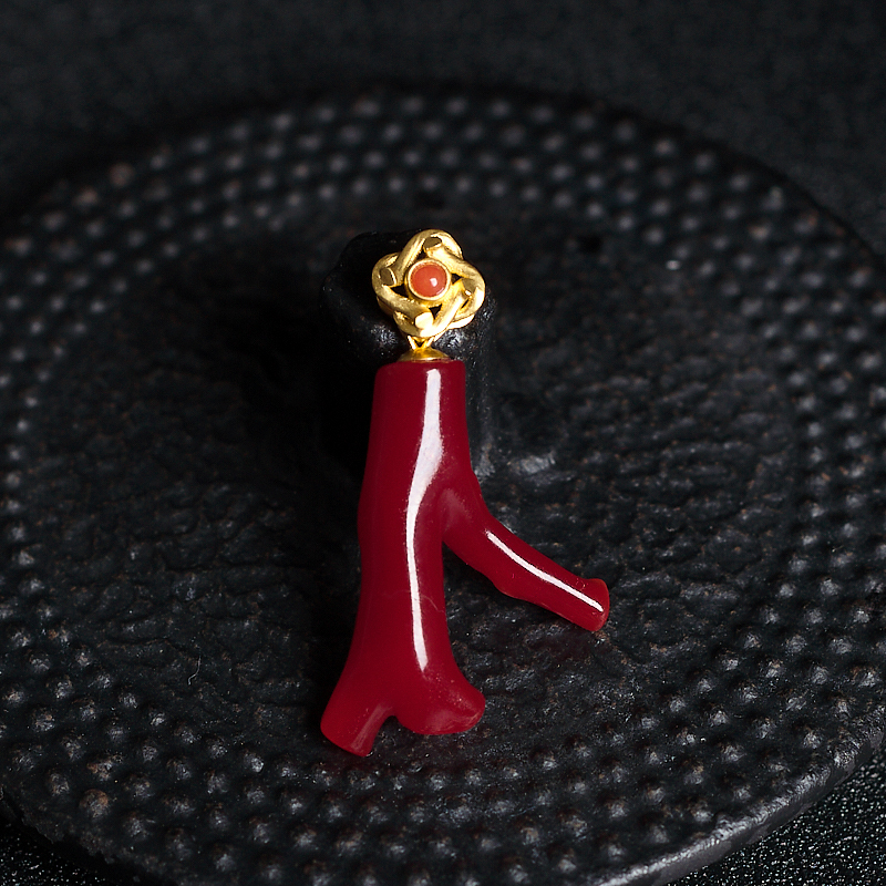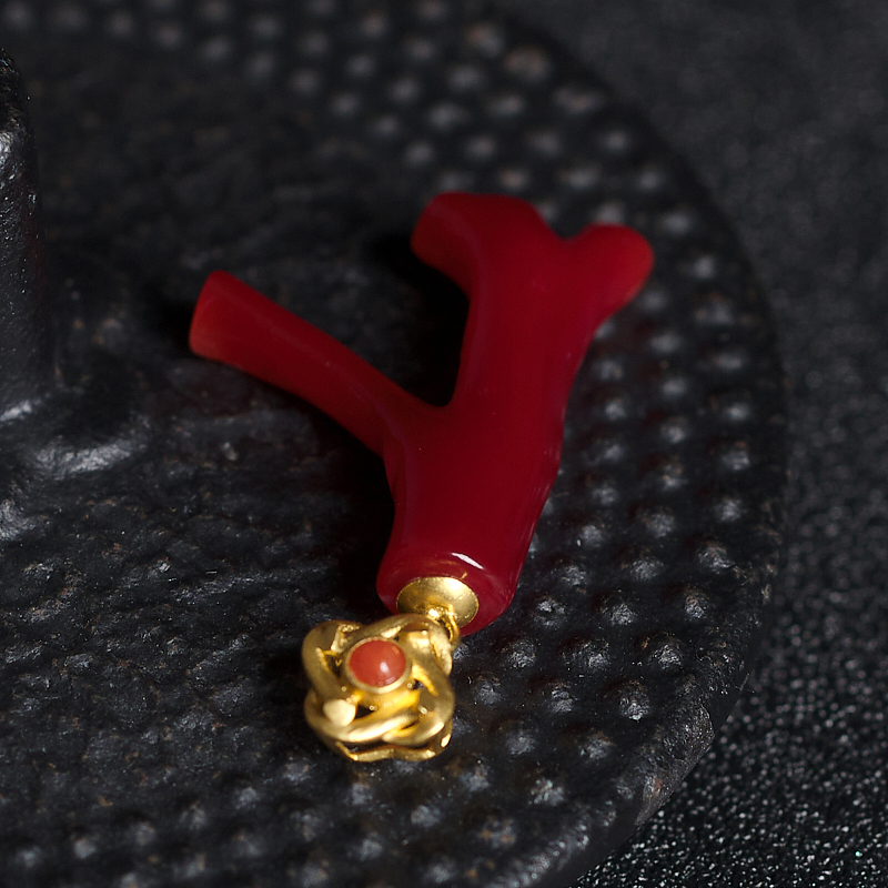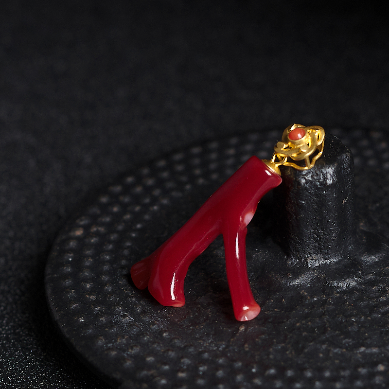• 18K阿卡牛血红珊瑚树枝吊坠