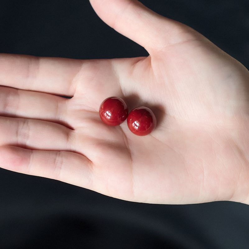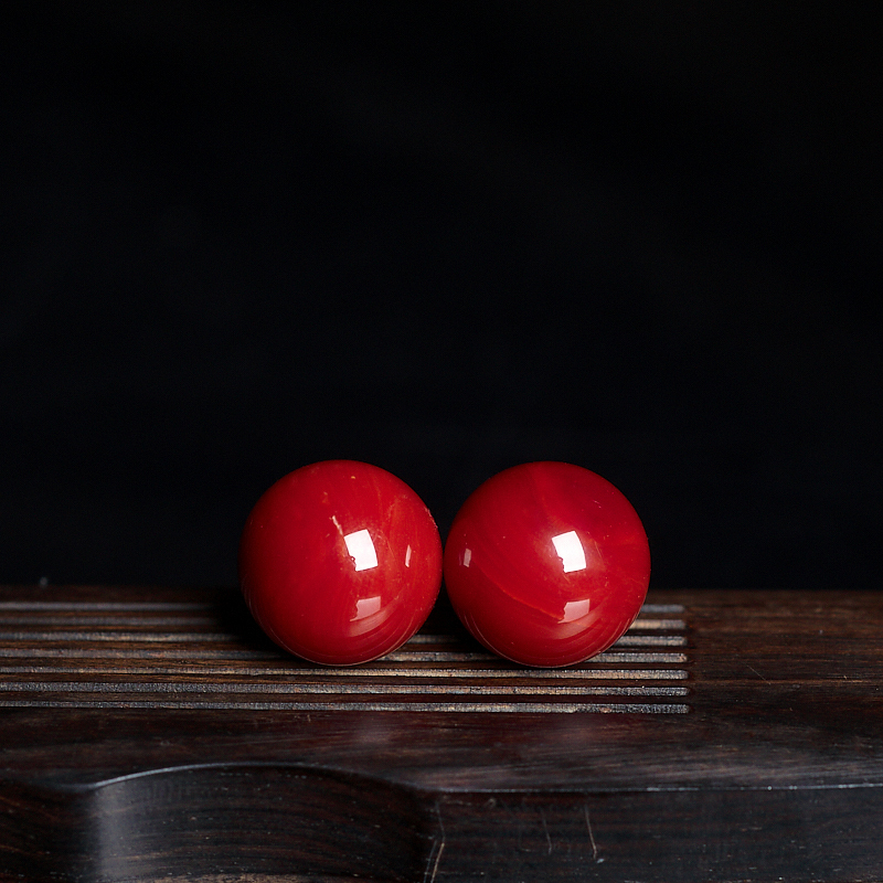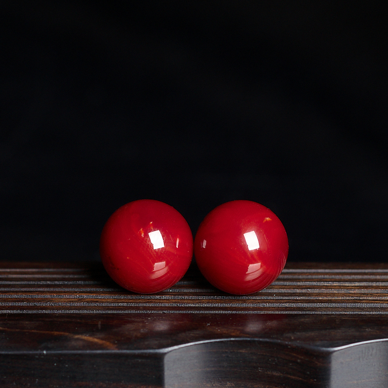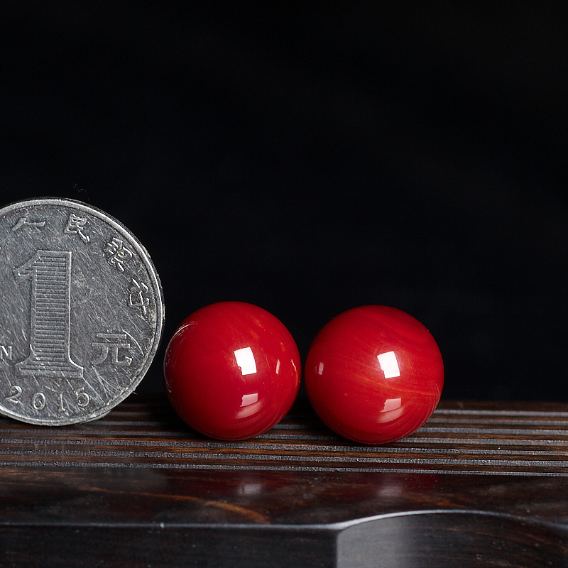 • 15mm阿卡牛血红珊瑚圆珠(两颗)