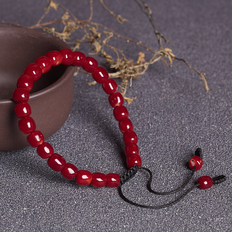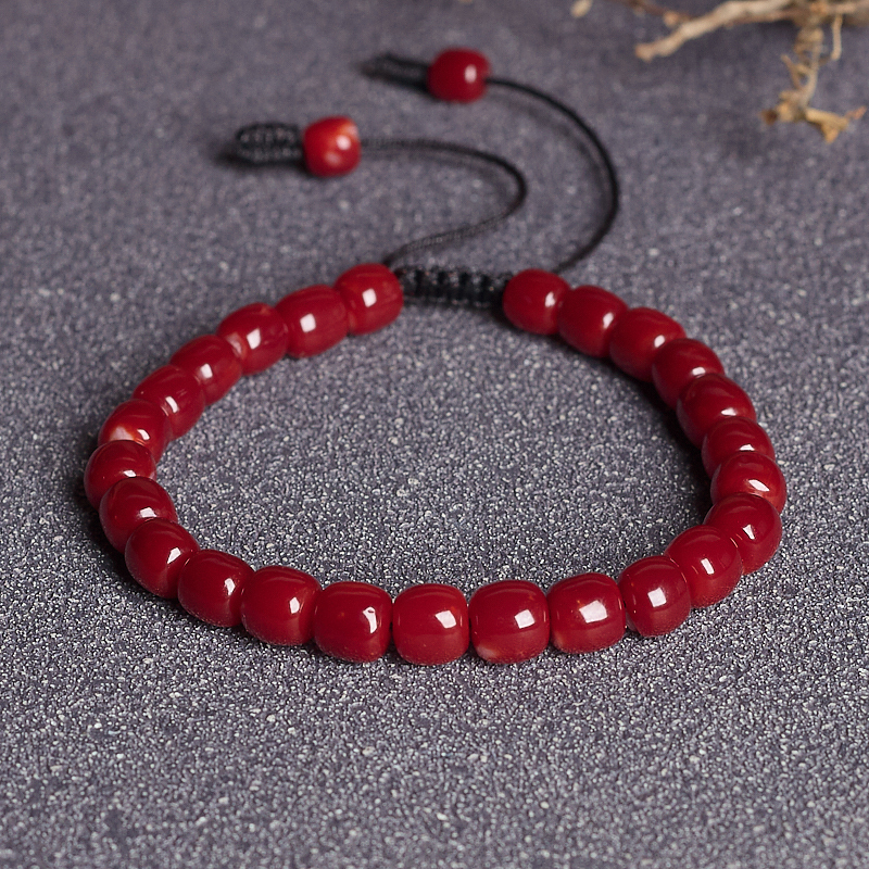 • 阿卡牛血红珊瑚桶珠单圈手串