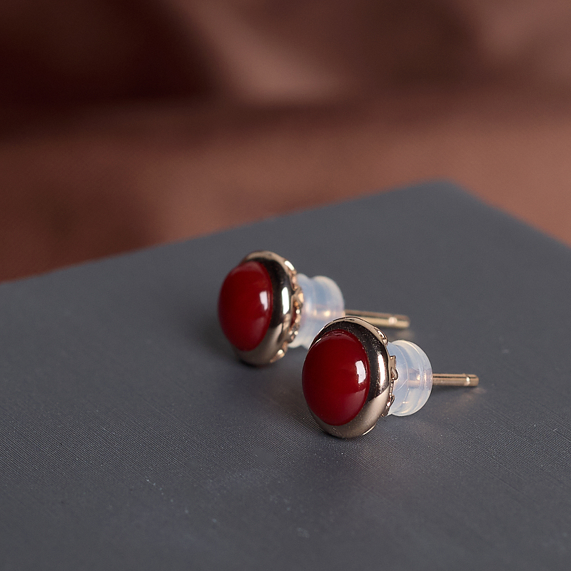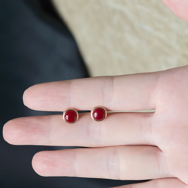 • [名  称] 18K阿卡牛血红珊瑚圆形耳钉
