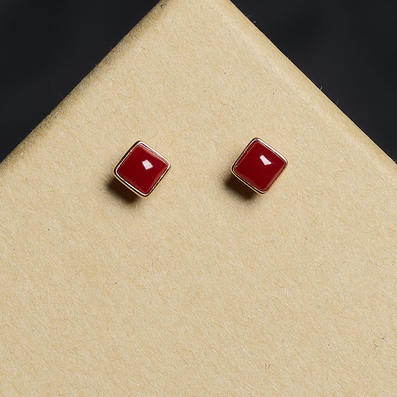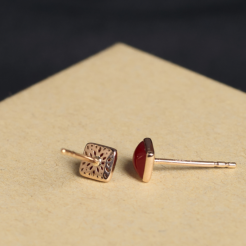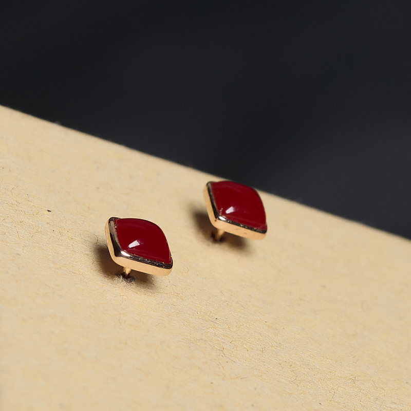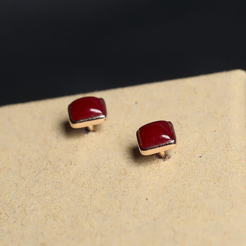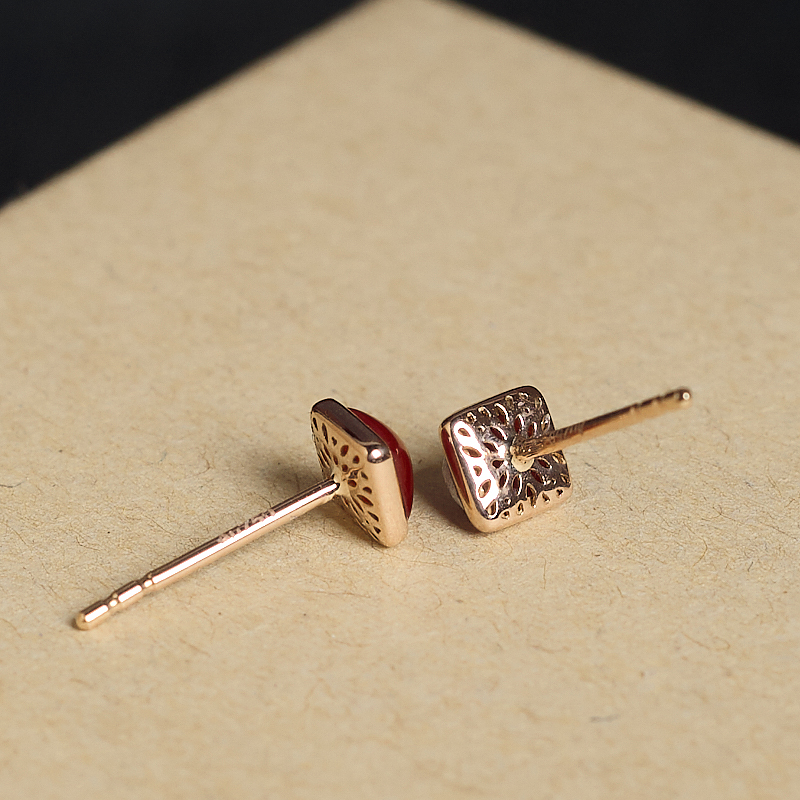 • [名  称] 18K阿卡牛血红珊瑚方形耳钉