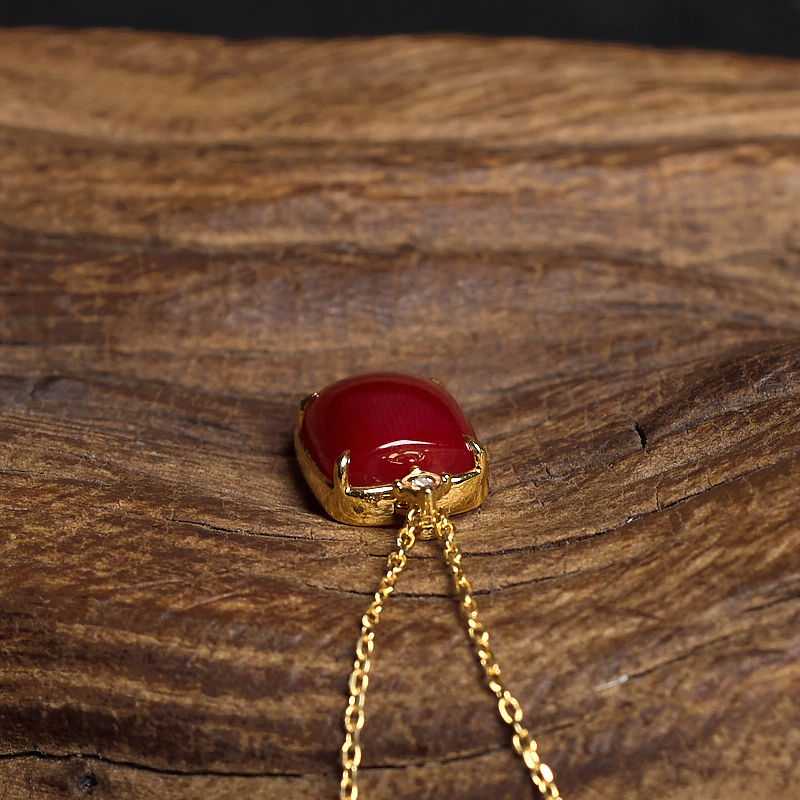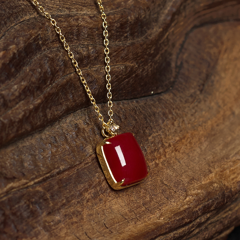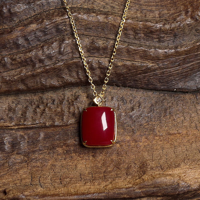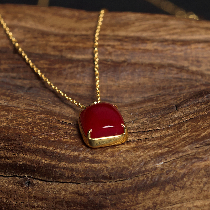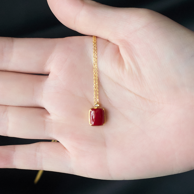 • 18K阿卡牛血红珊瑚方形项链
