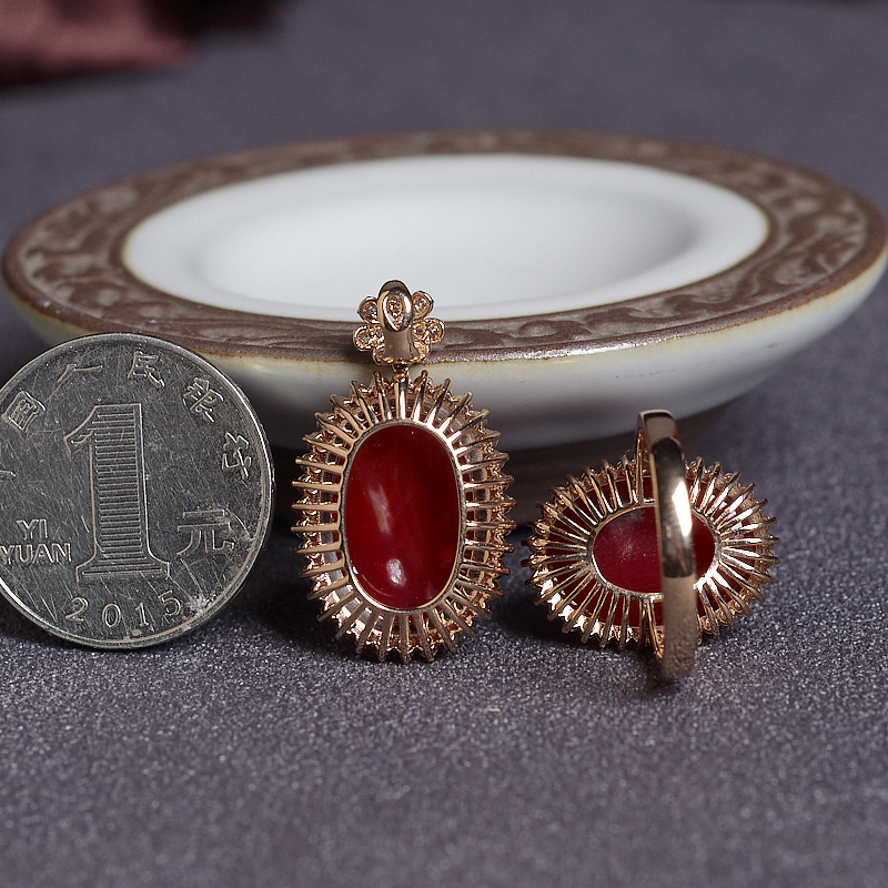 • [名  称] 18K阿卡牛血红珊瑚戒指/吊坠套装