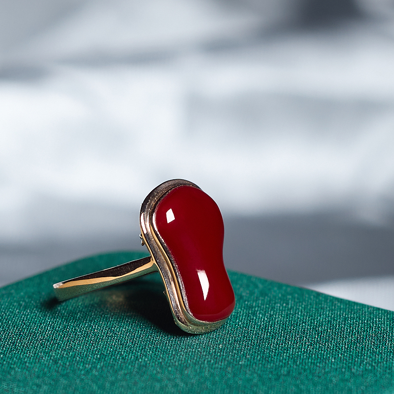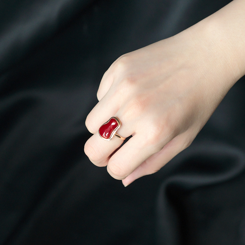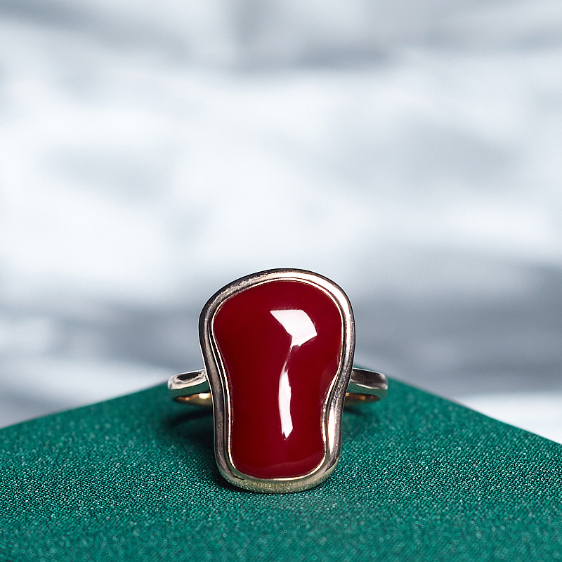 • 18K阿卡牛血红珊瑚随形戒指
