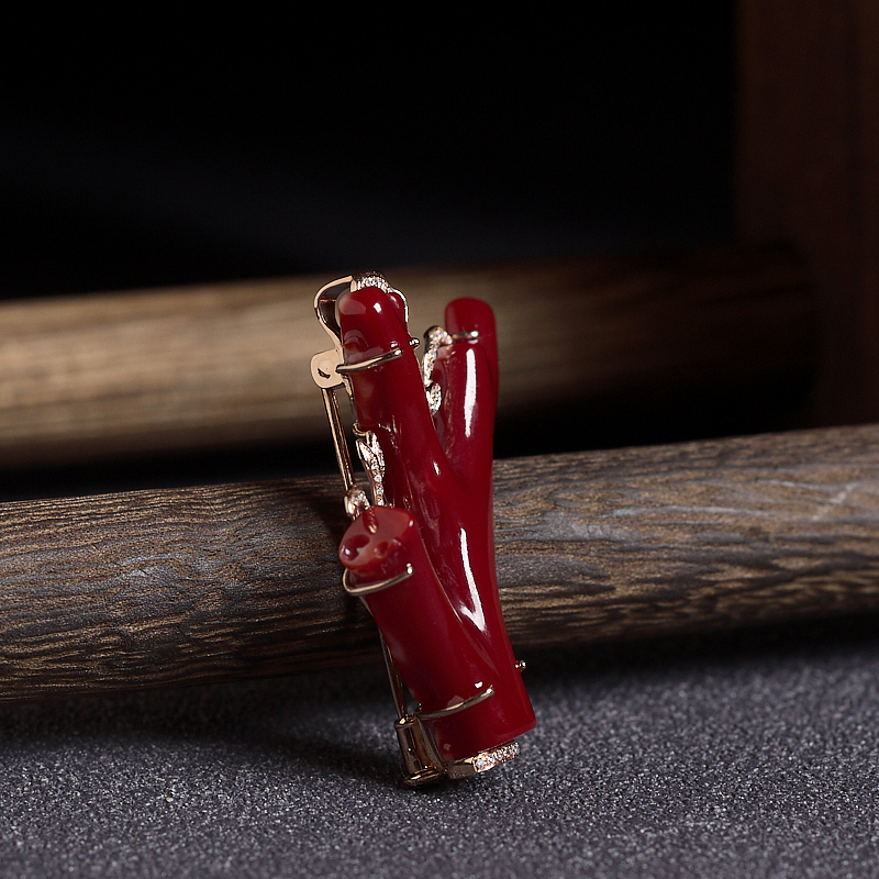 • 18K阿卡牛血红珊瑚树枝吊坠/胸针两用款