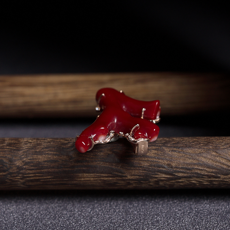 • [名  称] 18K阿卡牛血红珊瑚树枝吊坠/胸针两用款