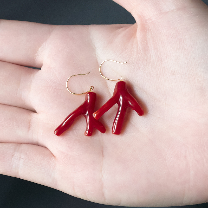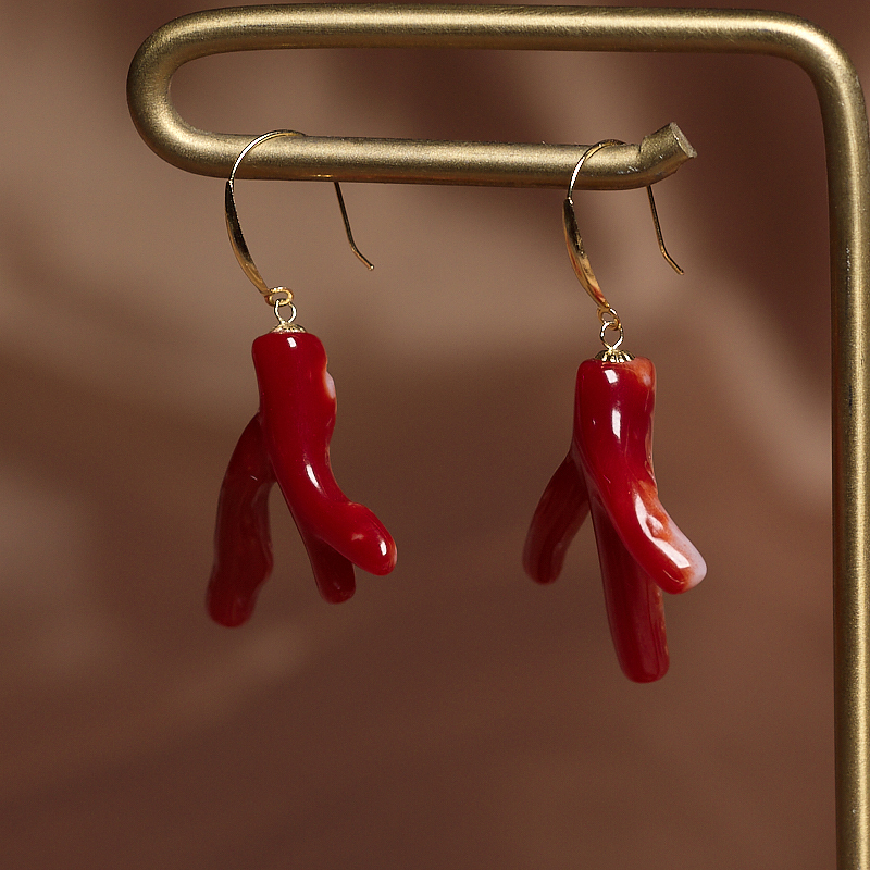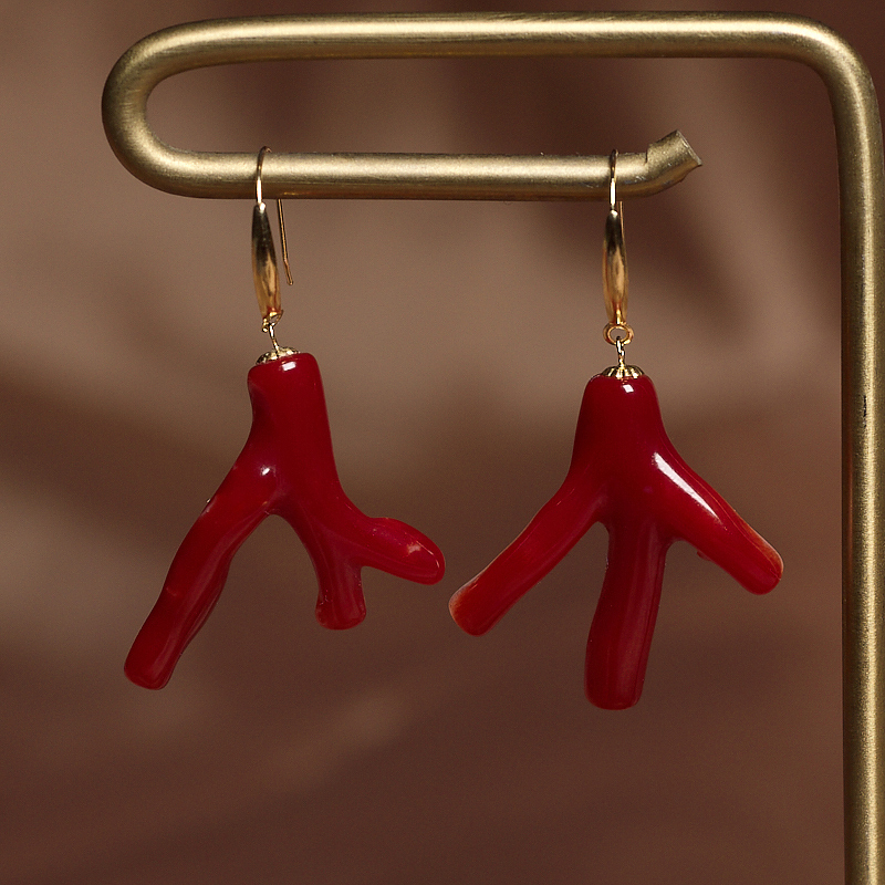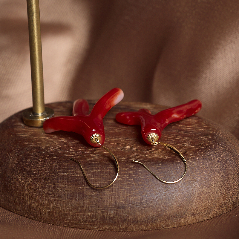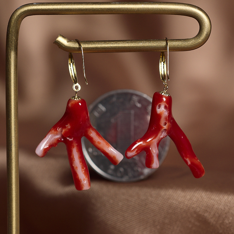 • [名  称] 18K阿卡牛血红珊瑚树枝耳环