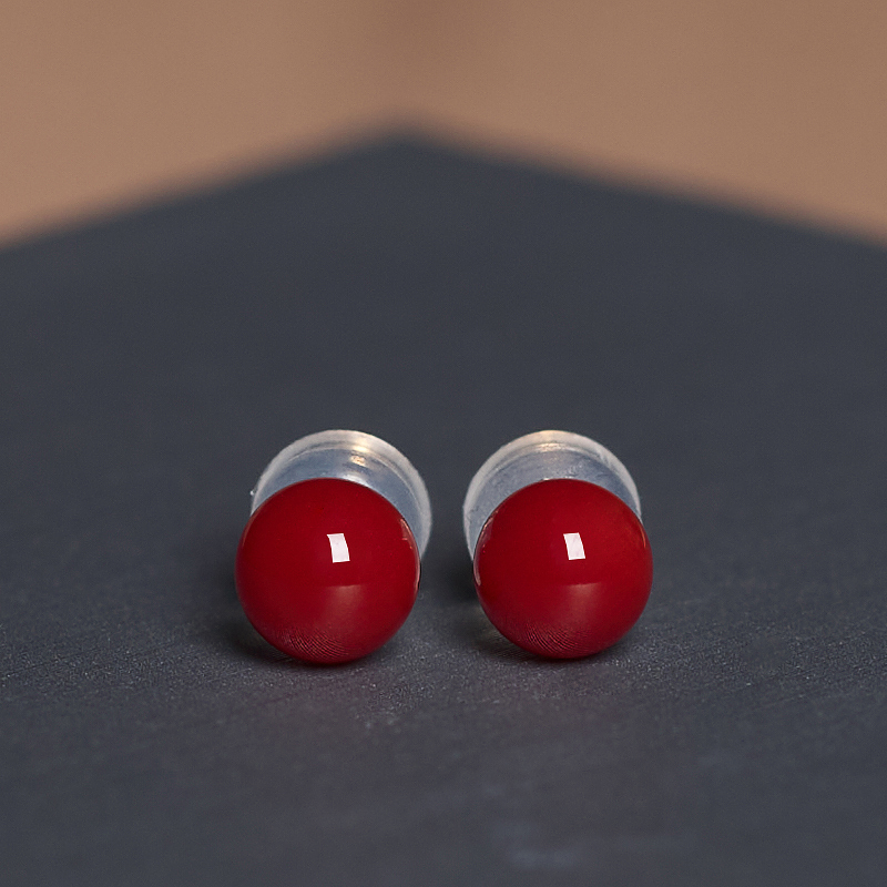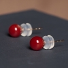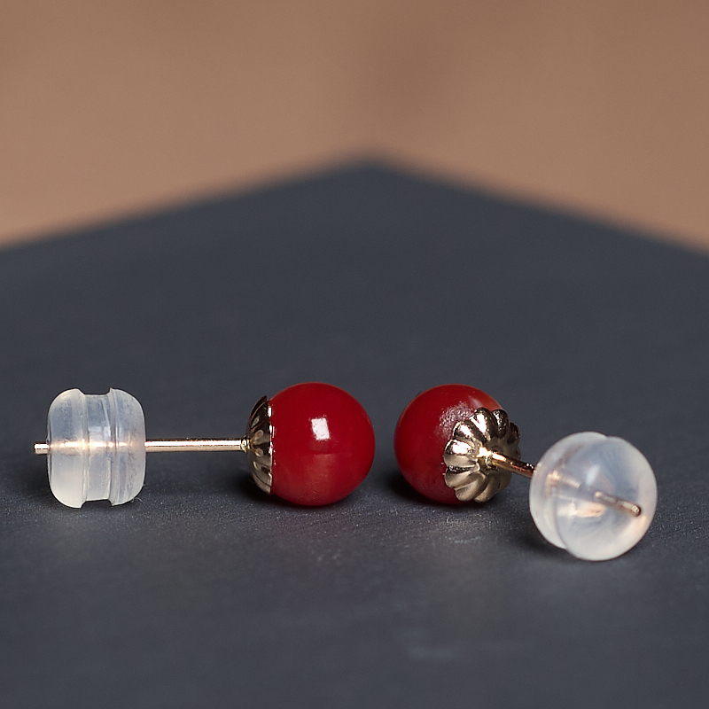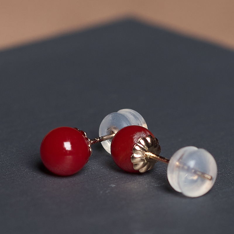 • 18K阿卡牛血红珊瑚圆珠耳钉
