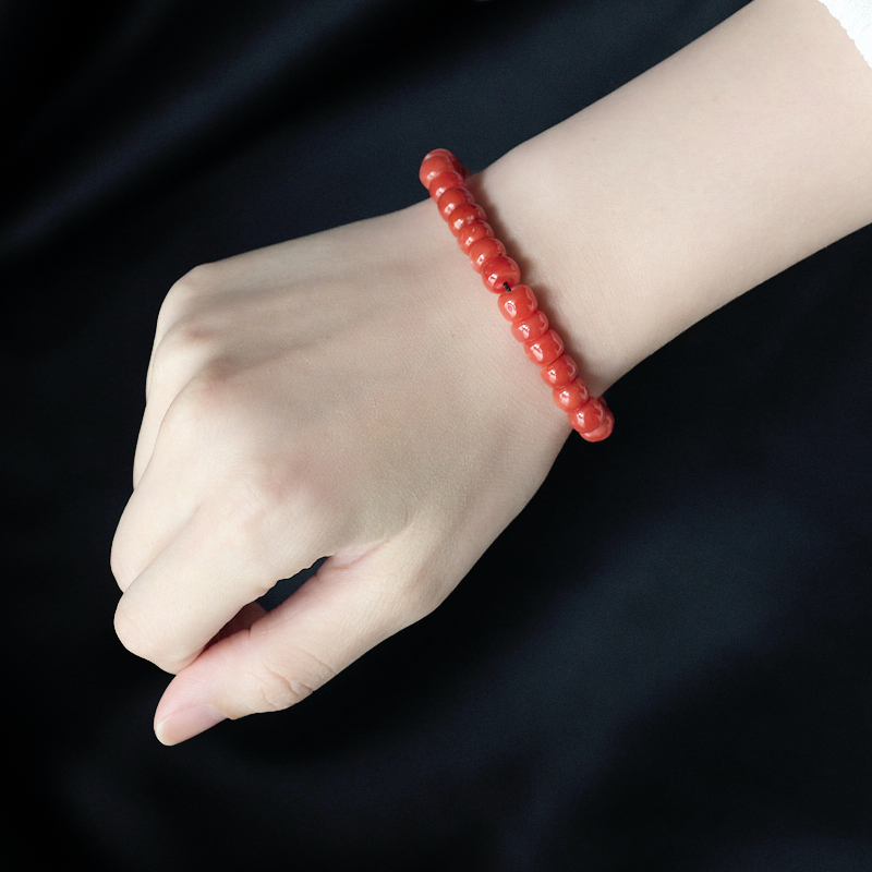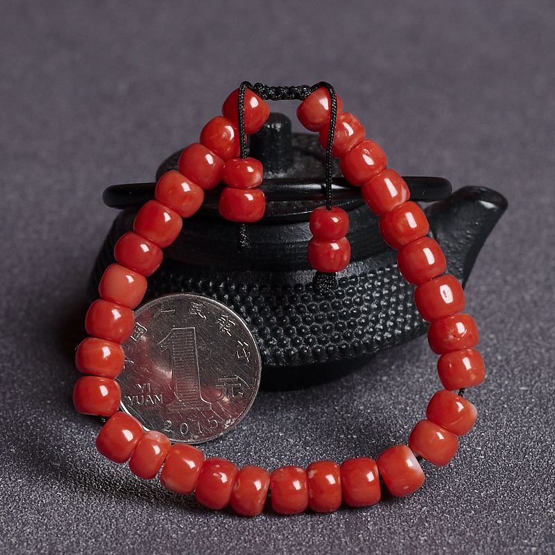 • 阿卡珊瑚桶珠单圈手串