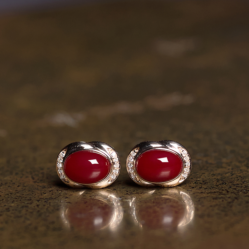 • [名  称] 18K阿卡牛血红珊瑚耳钉
