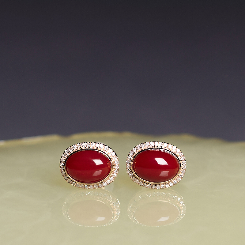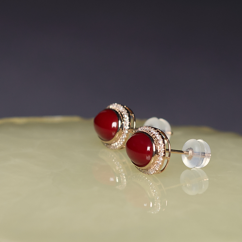 • [名  称] 18K阿卡牛血红珊瑚耳钉