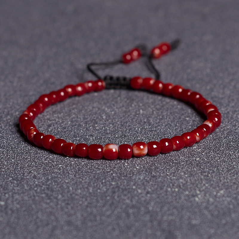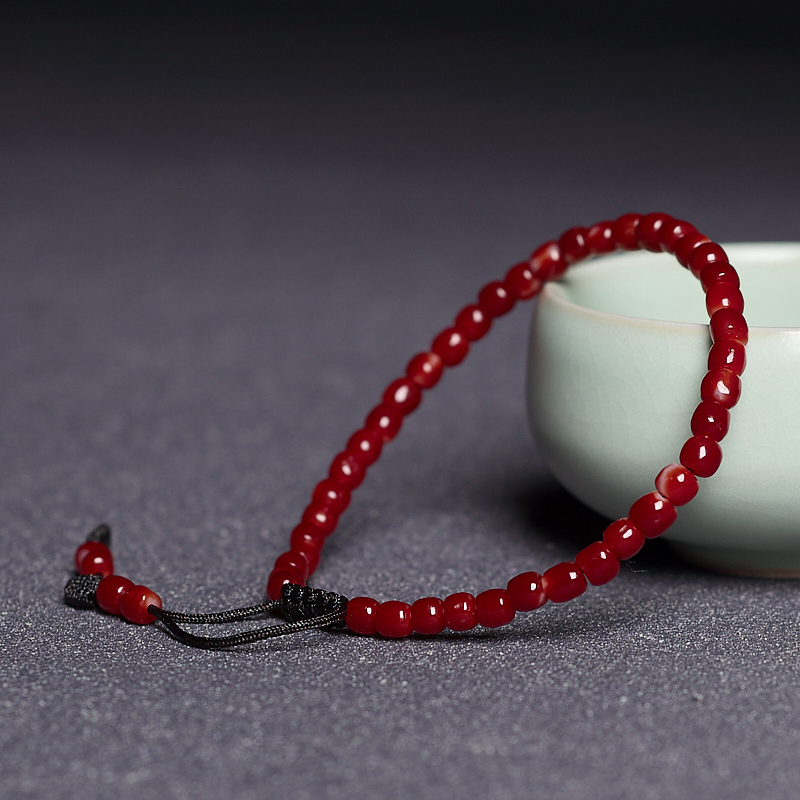 • 阿卡牛血红珊瑚桶珠单圈手串