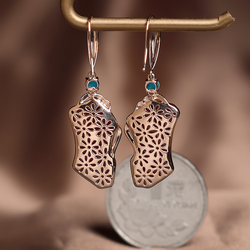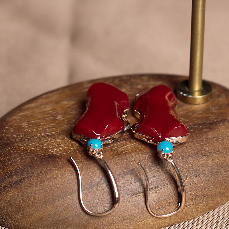 • 18K阿卡牛血红珊瑚随形耳环