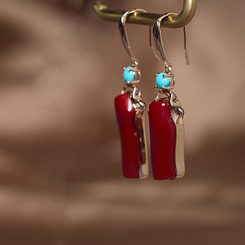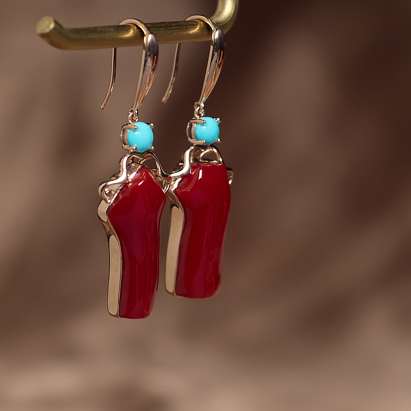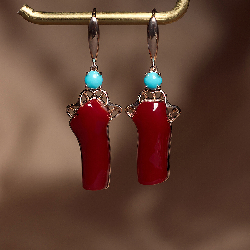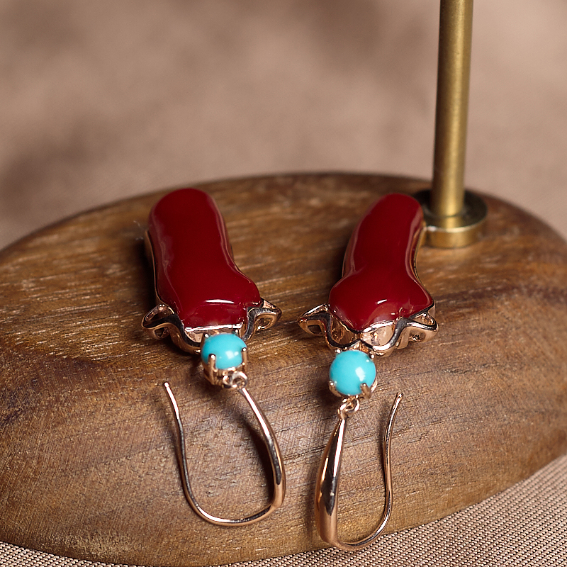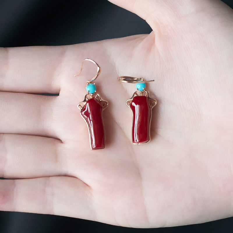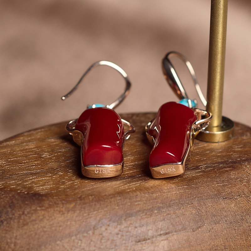 • [名  称] 18K阿卡牛血红珊瑚随形耳环