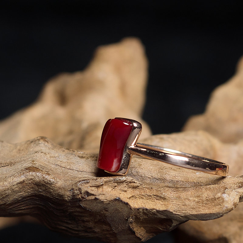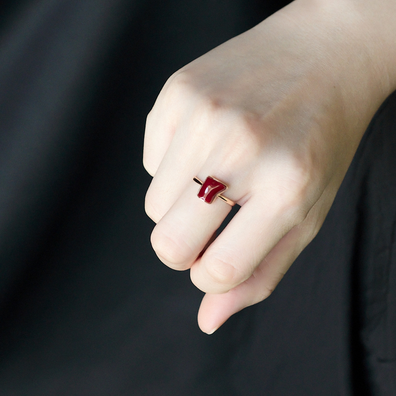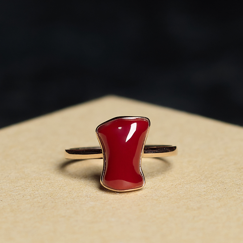 • 18K阿卡牛血红珊瑚随形戒指