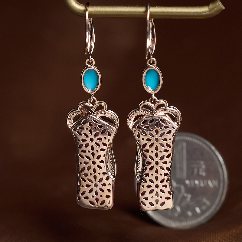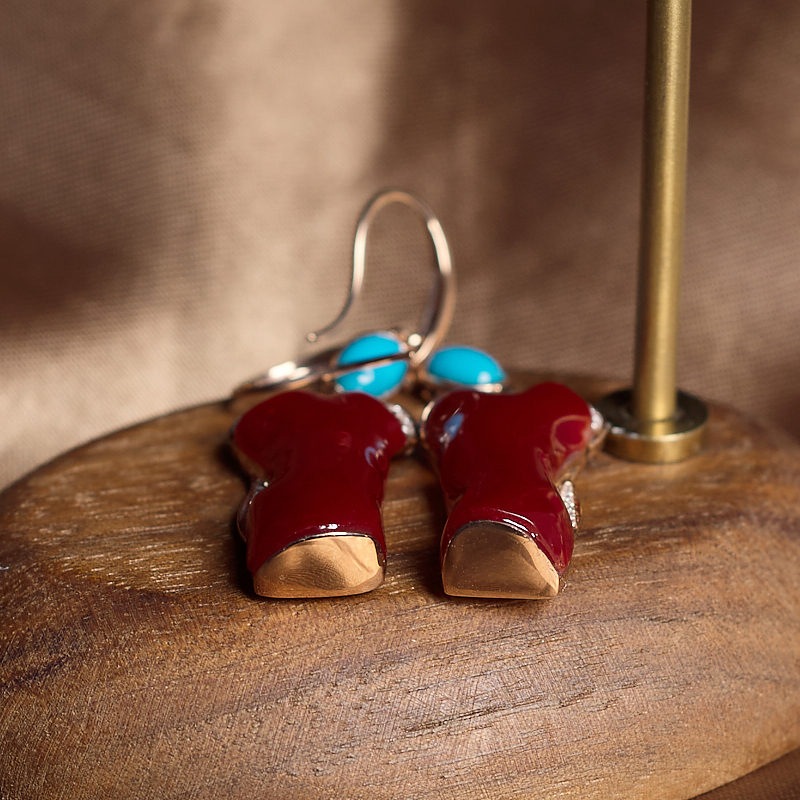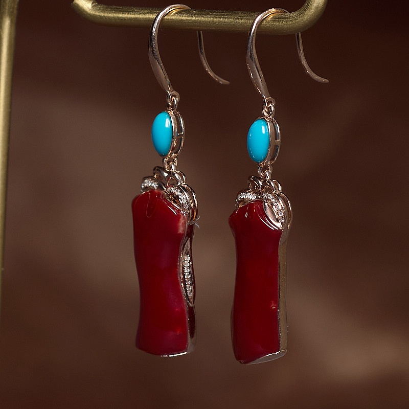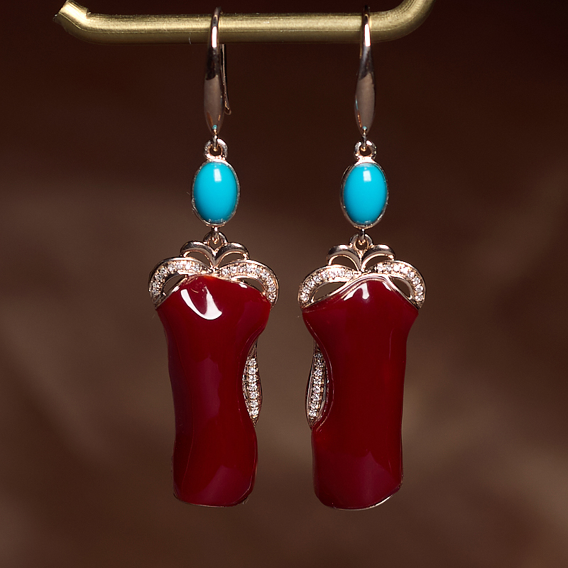 • [名  称] 18K阿卡牛血红珊瑚随形耳环