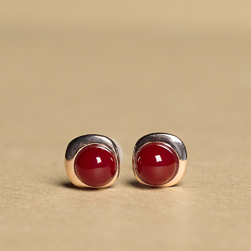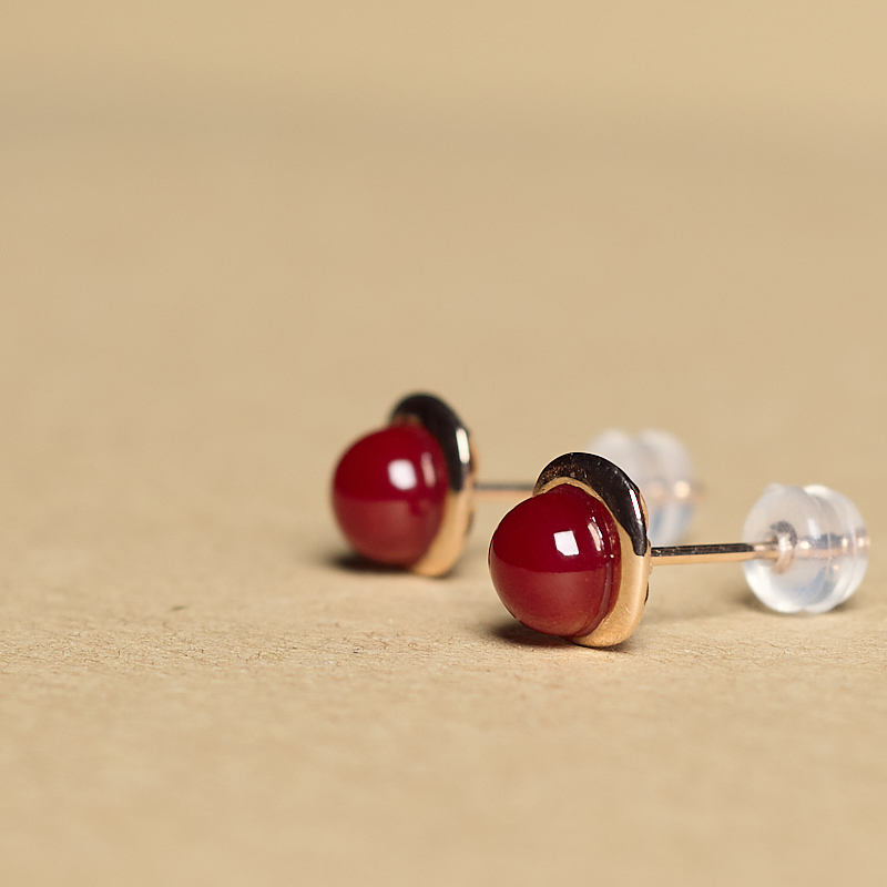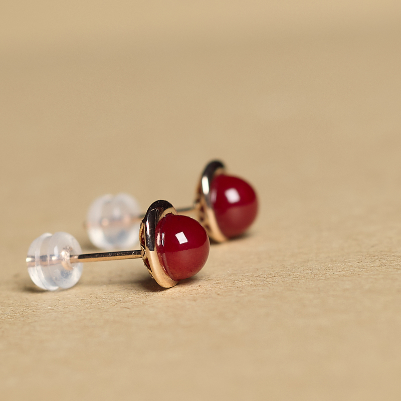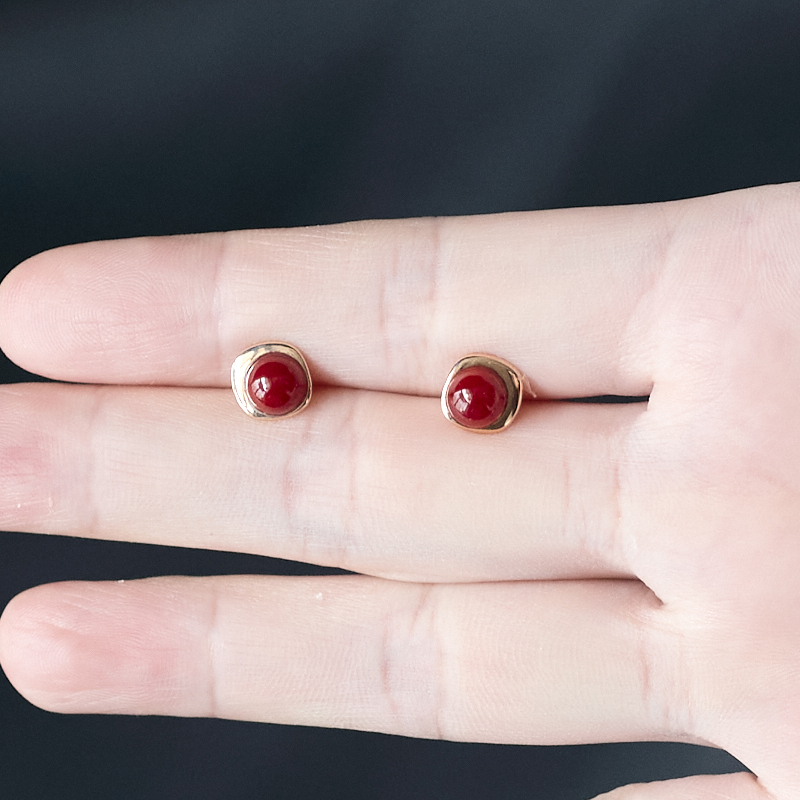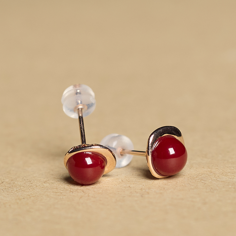 • 18K阿卡牛血红珊瑚圆珠耳钉
