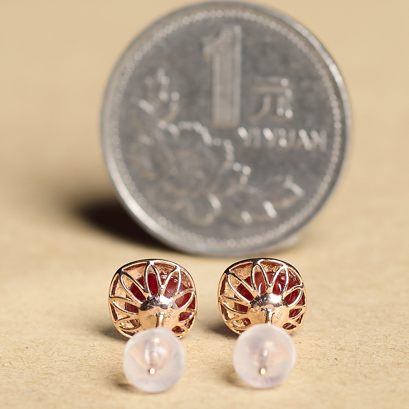 • [名  称] 18K阿卡牛血红珊瑚圆珠耳钉