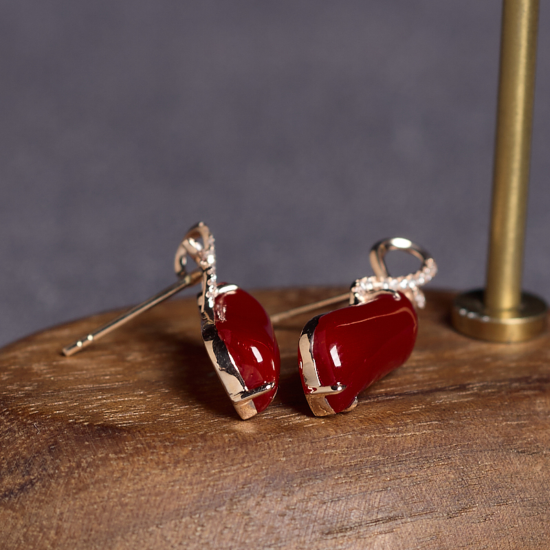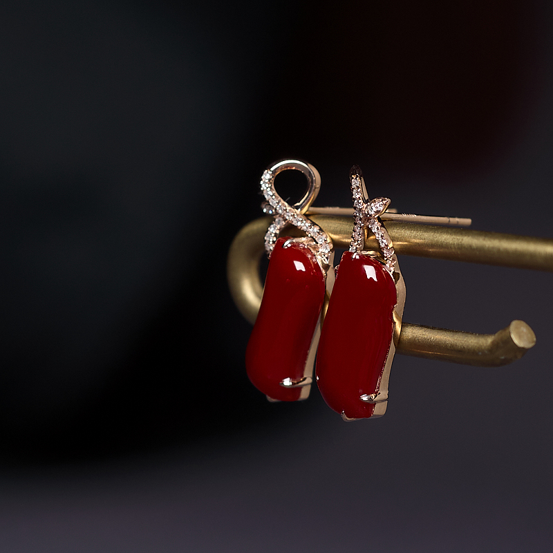 • [名  称] 18K阿卡牛血红珊瑚随形耳钉