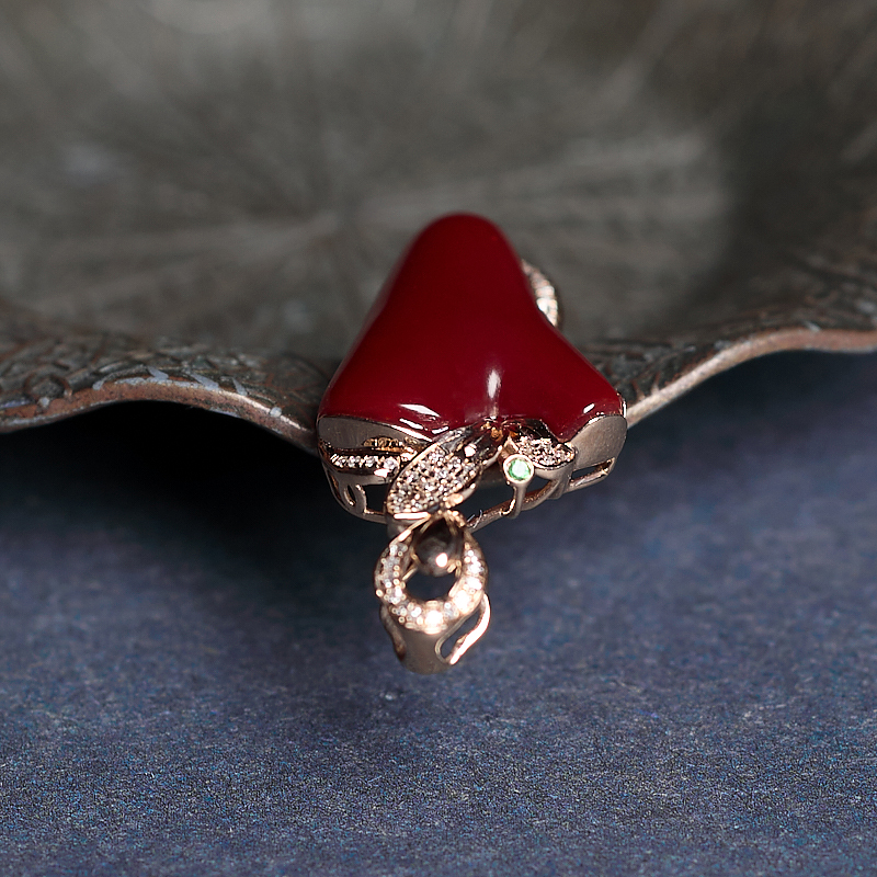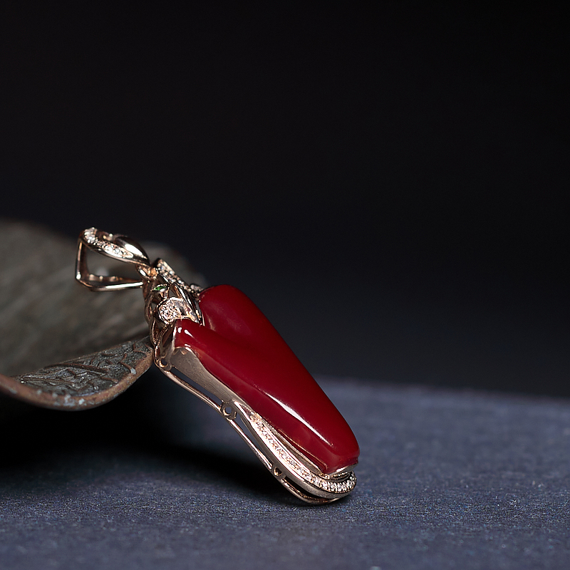 • [名  称] 18K阿卡牛血红珊瑚随形吊坠