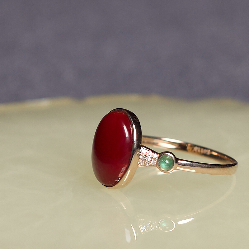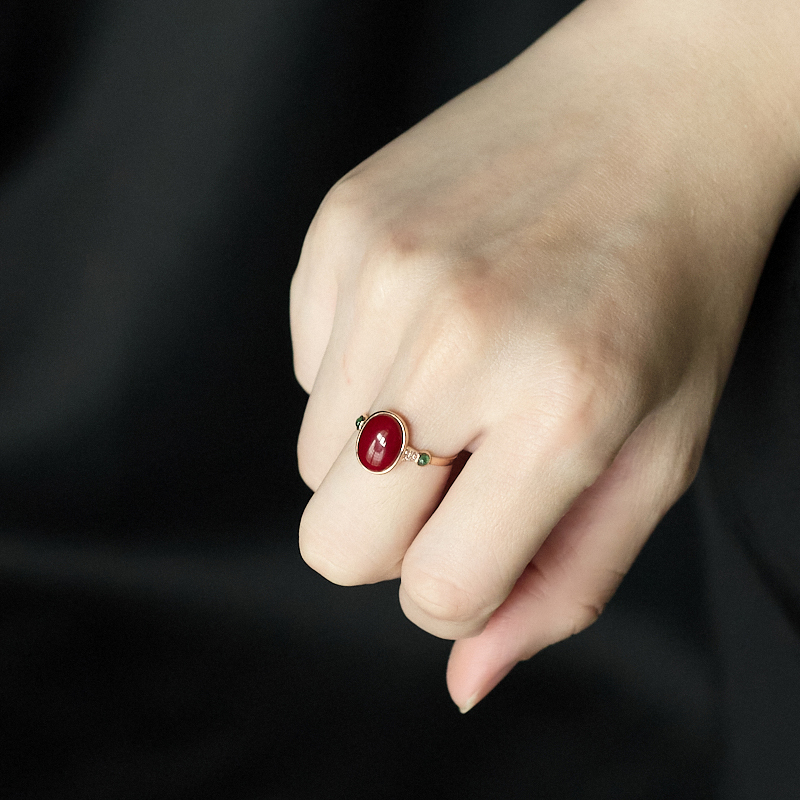 • [名  称] 18K阿卡牛血红珊瑚戒指