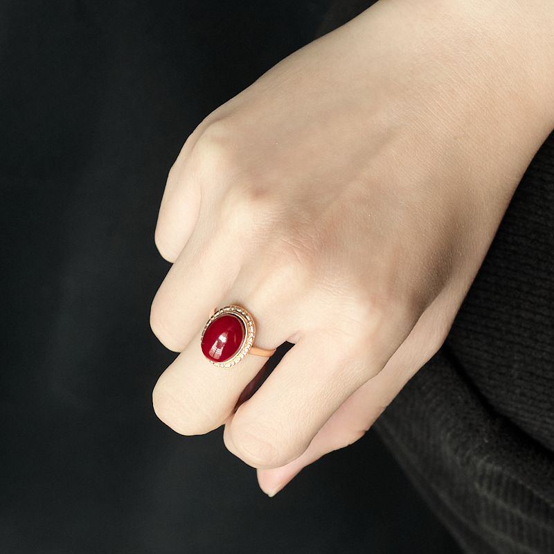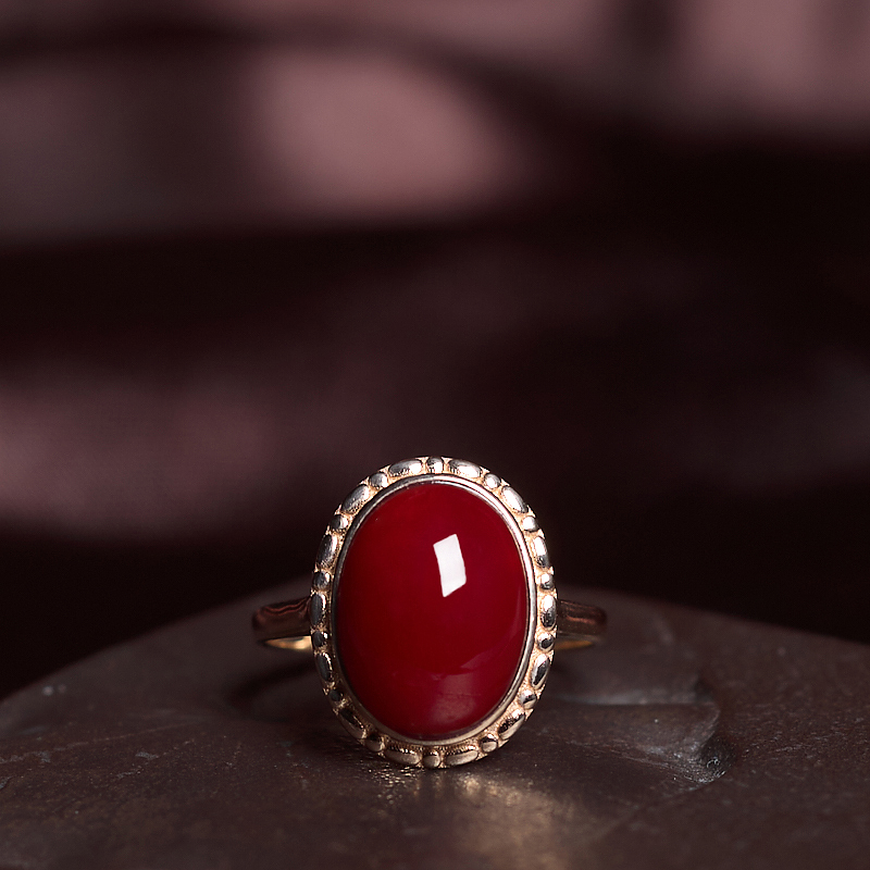 • 18K阿卡牛血红珊瑚戒指