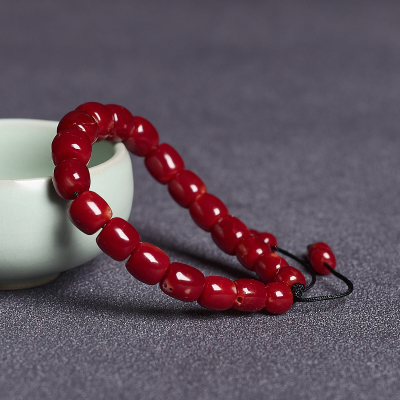 • 阿卡牛血红珊瑚桶珠单圈手串
