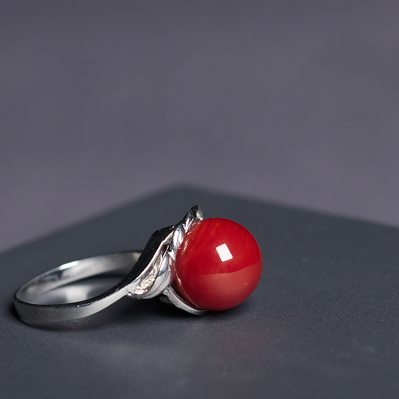• 18K阿卡牛血红珊瑚圆珠戒指