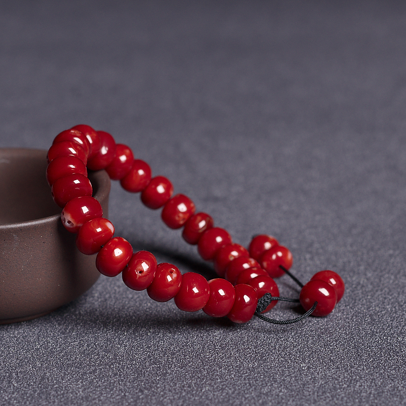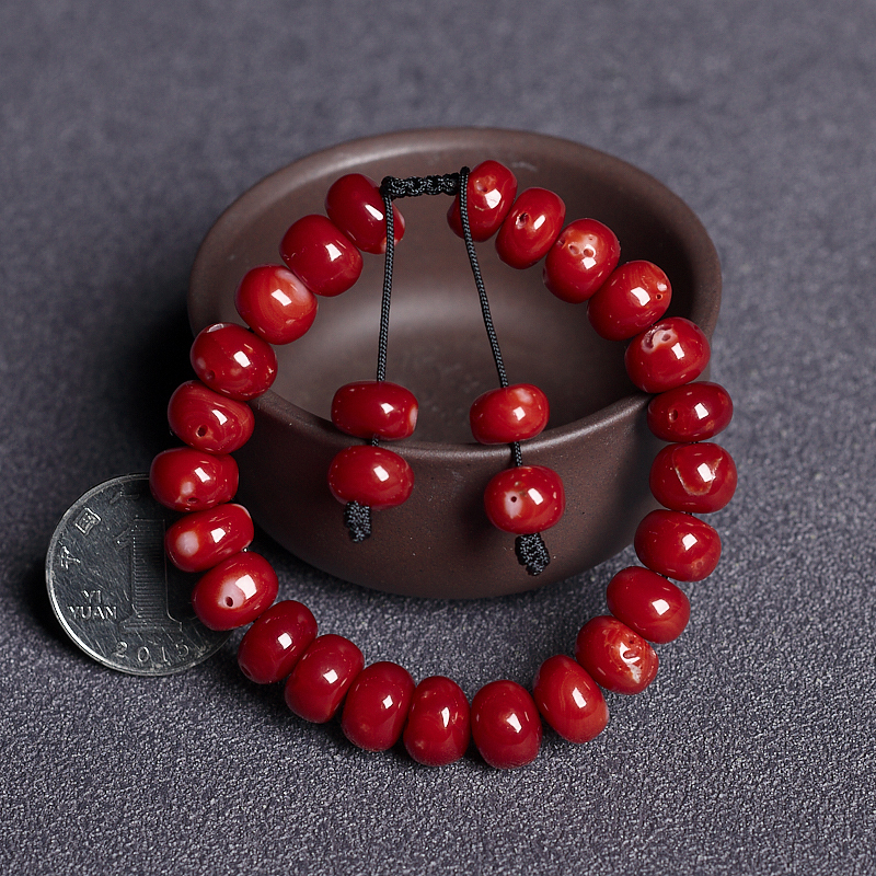 • 阿卡牛血红珊瑚鼓珠单圈手串