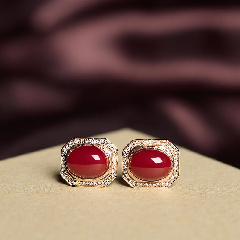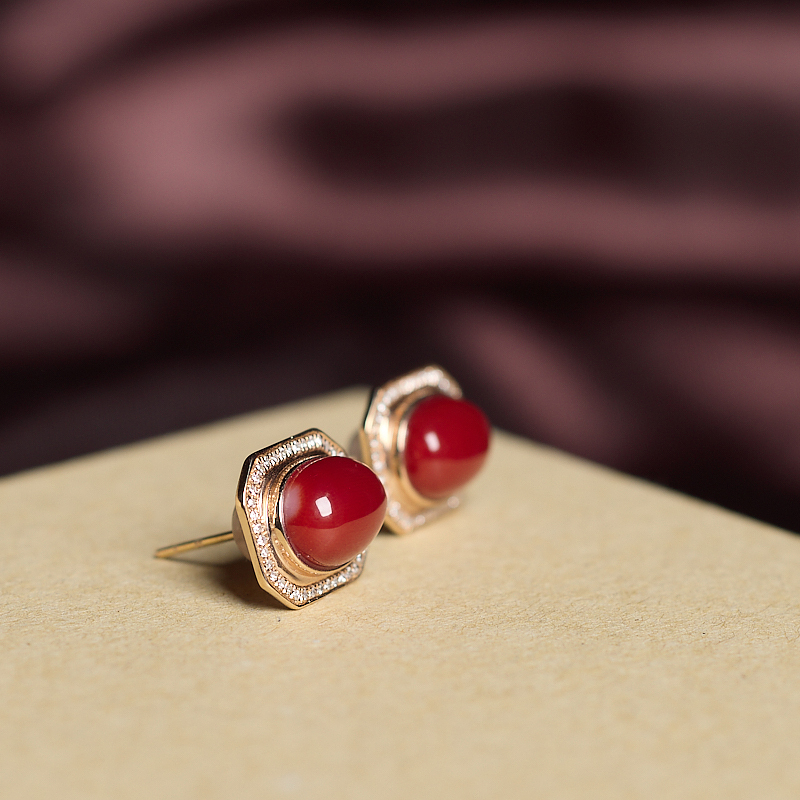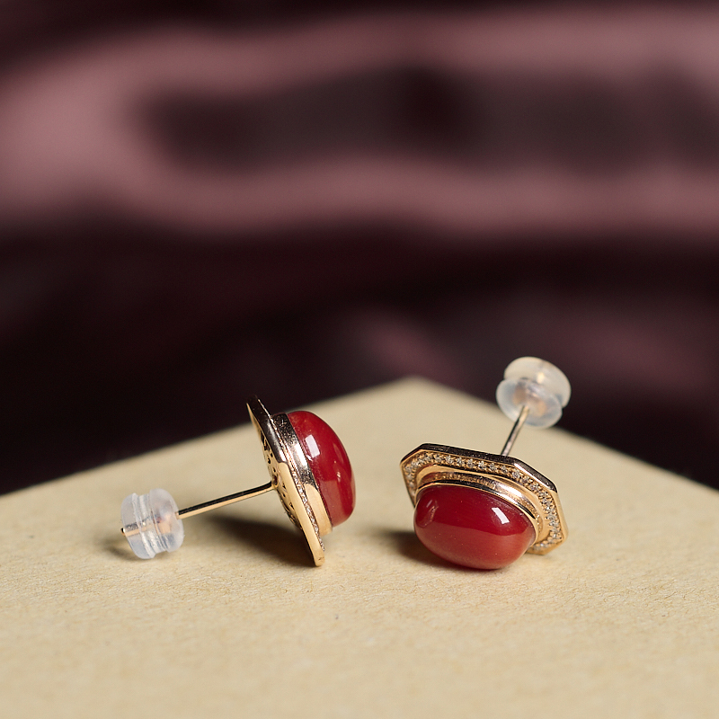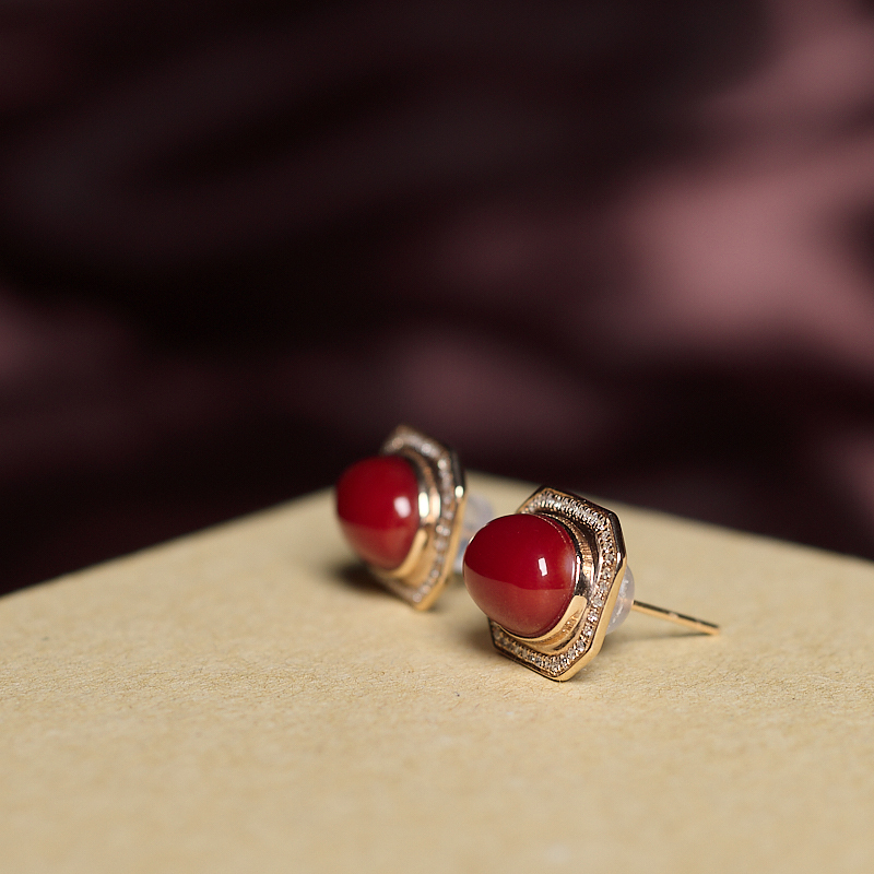 • [名  称] 18K阿卡牛血红珊瑚耳钉