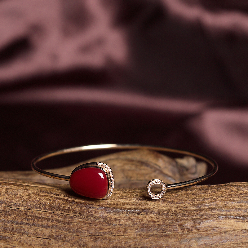 • 58mm18K阿卡牛血红珊瑚随形手镯