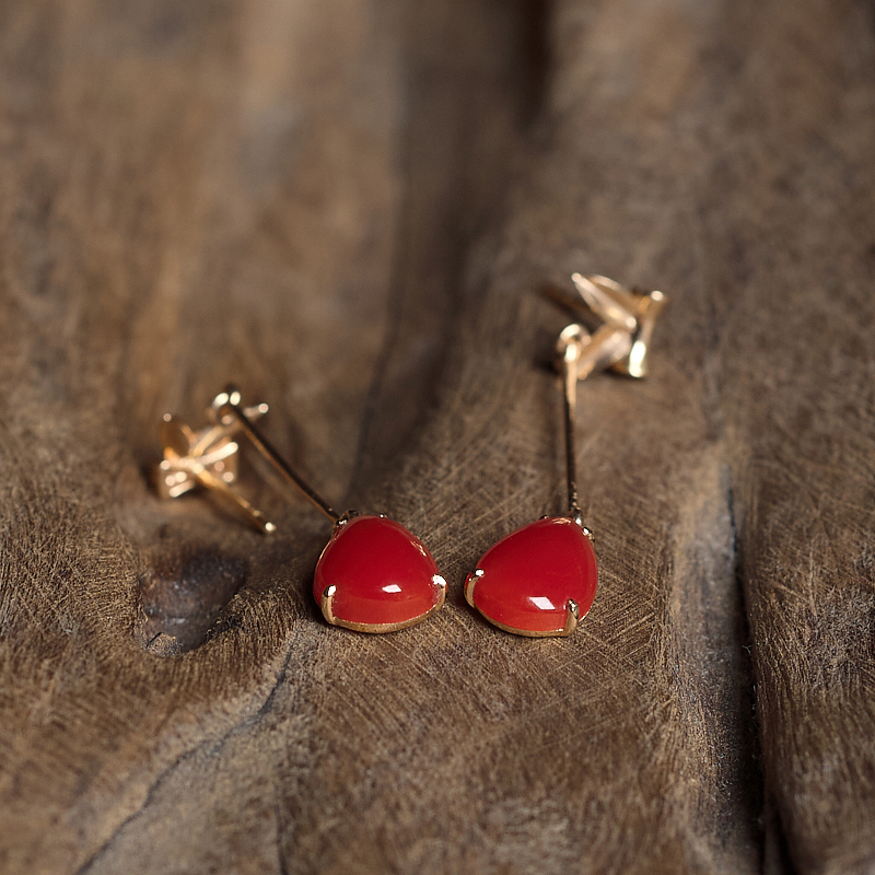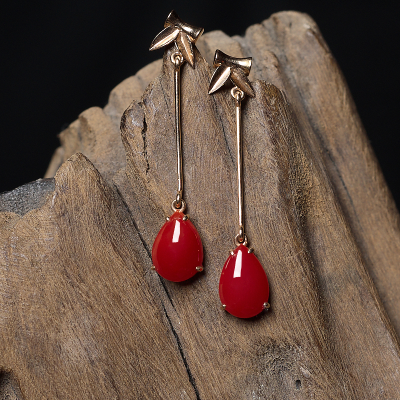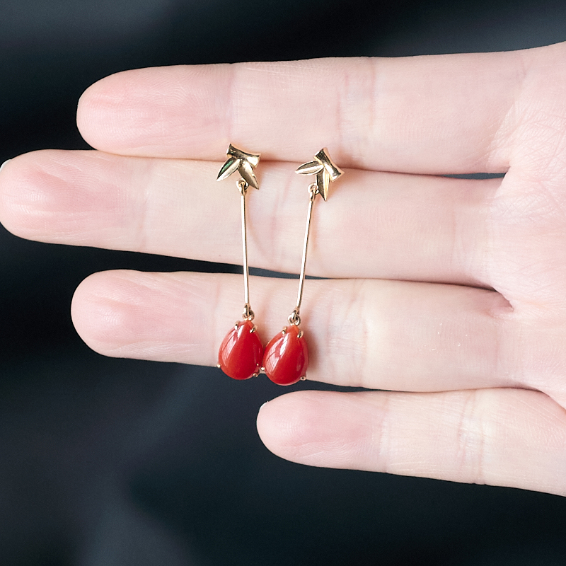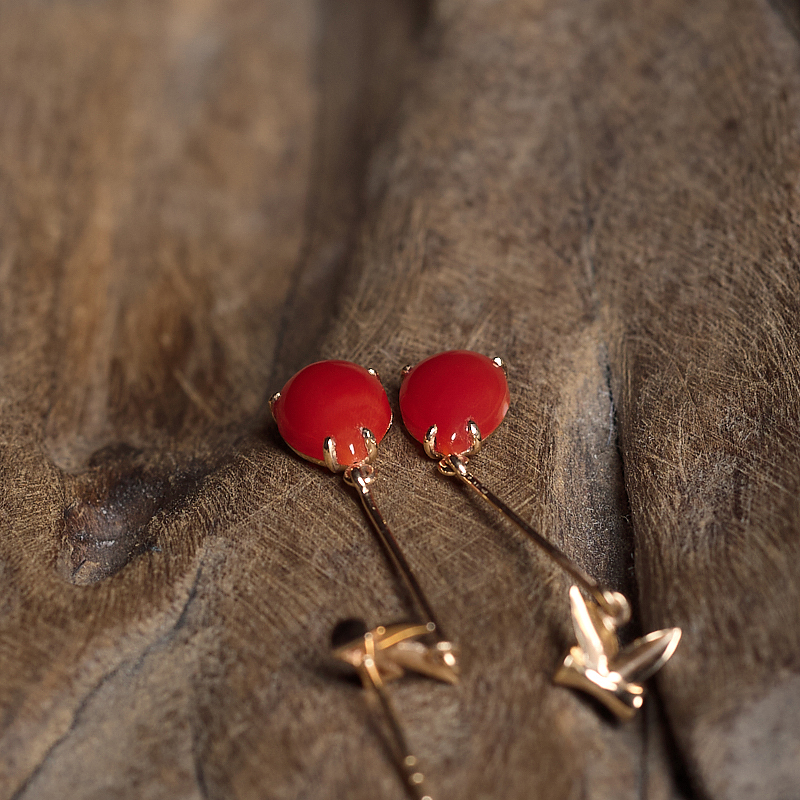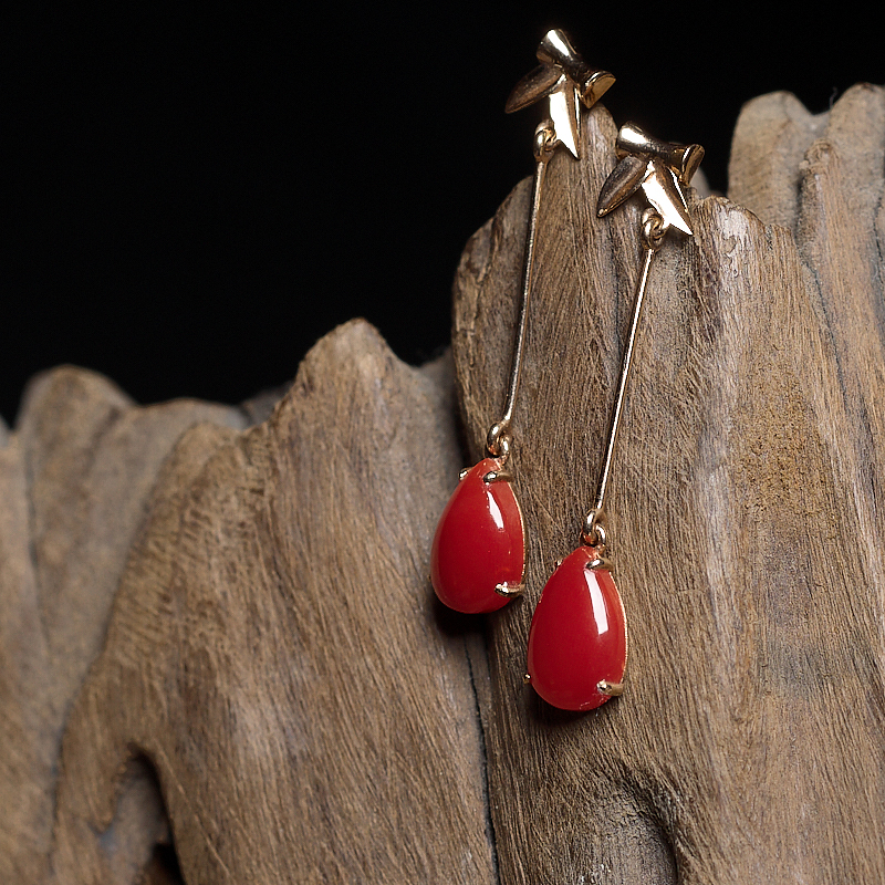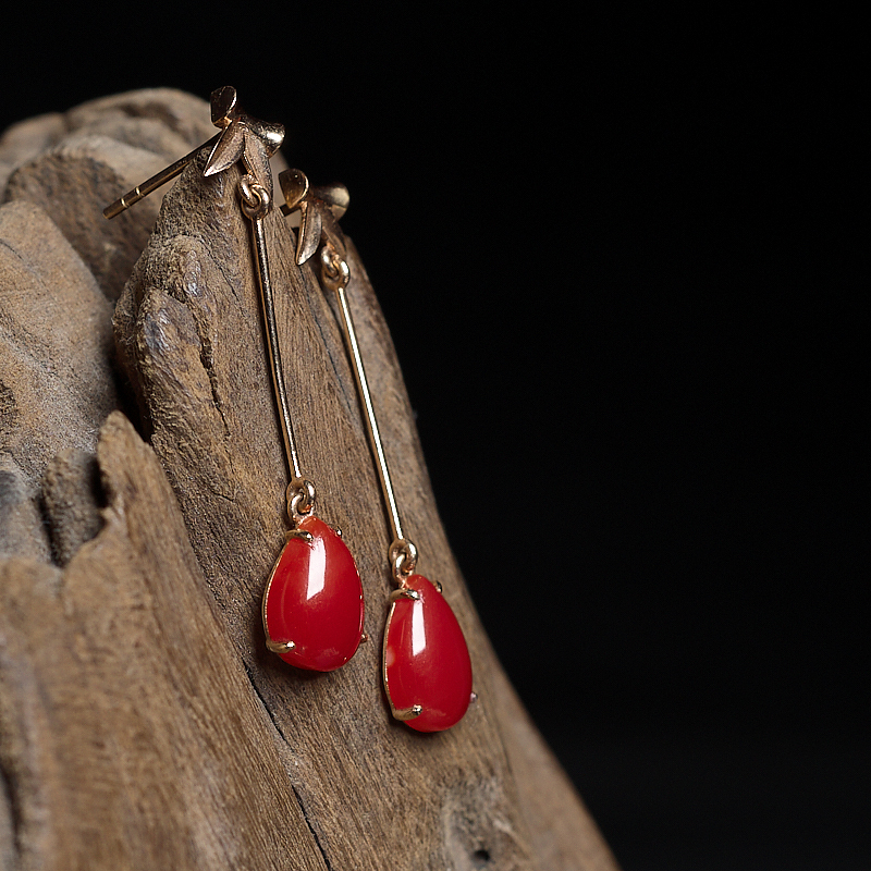 • 18K阿卡牛血红珊瑚水滴耳坠