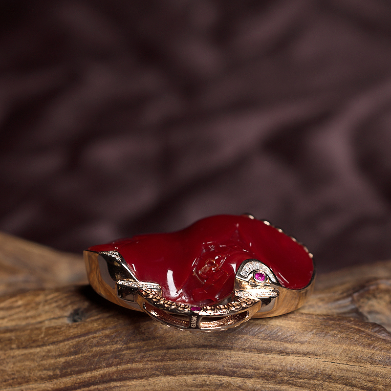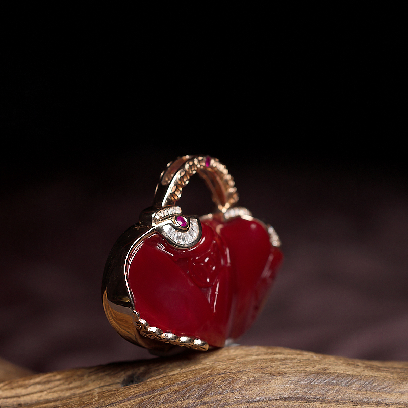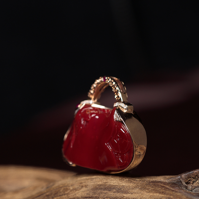 • 18K阿卡牛血红珊瑚钱包吊坠