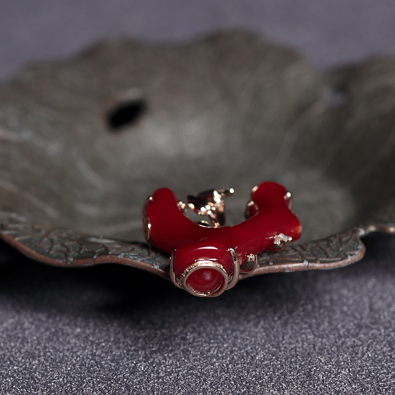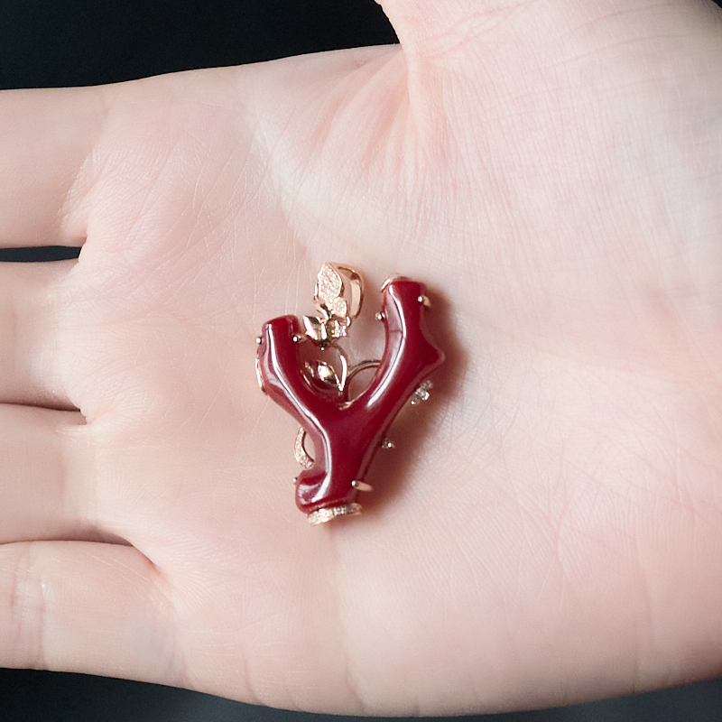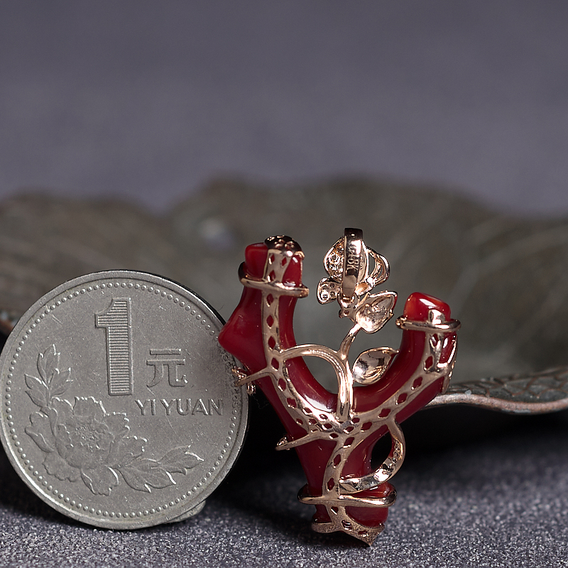 • 18K阿卡牛血红珊瑚树枝吊坠