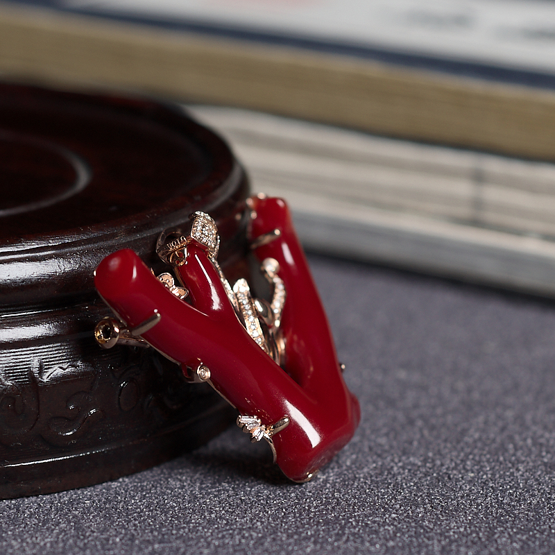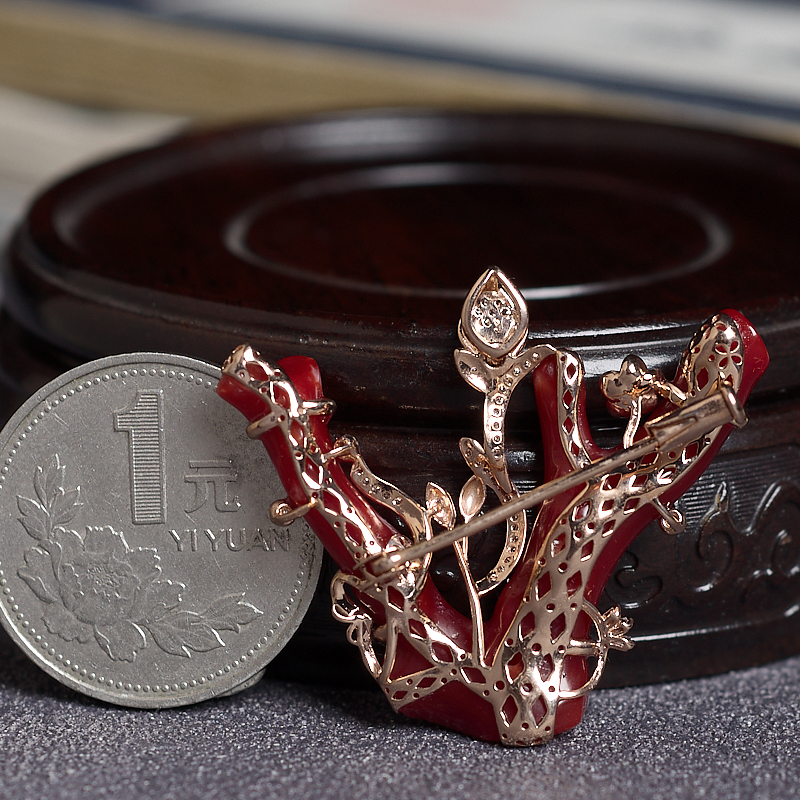• [名  称] 18K阿卡牛血红珊瑚树枝吊坠/胸针两用款