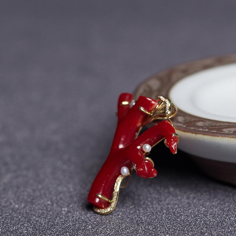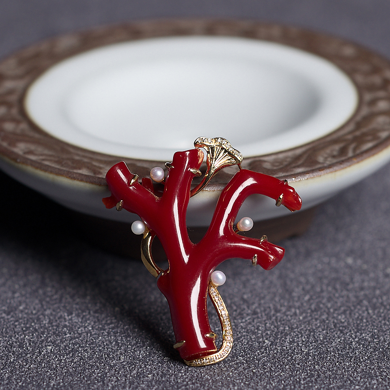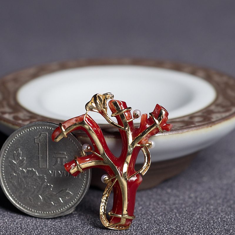 • 18K阿卡牛血红珊瑚树枝吊坠