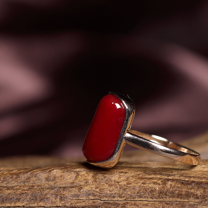 • [名  称] 18K阿卡牛血红珊瑚随形戒指