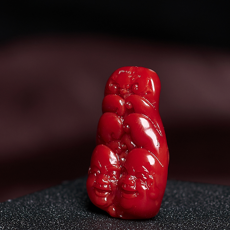 • 阿卡牛血红珊瑚弥勒佛吊坠