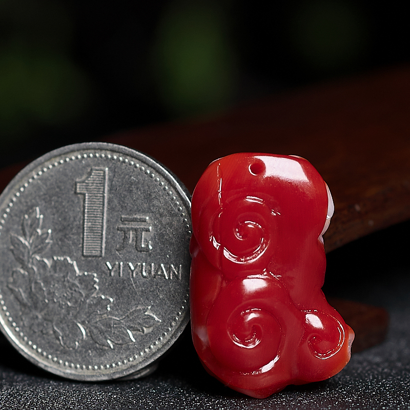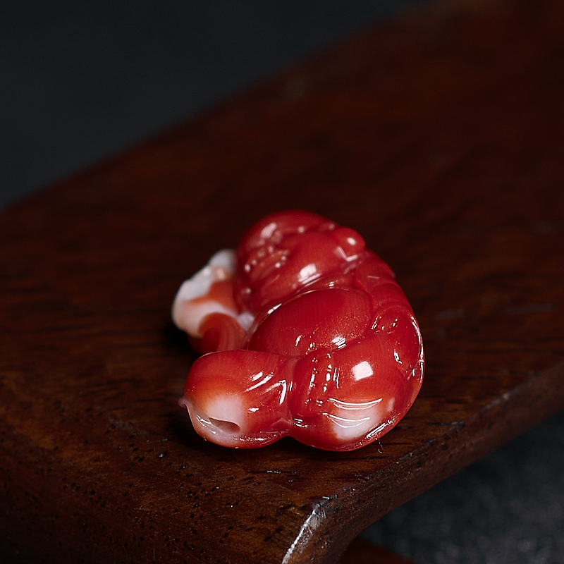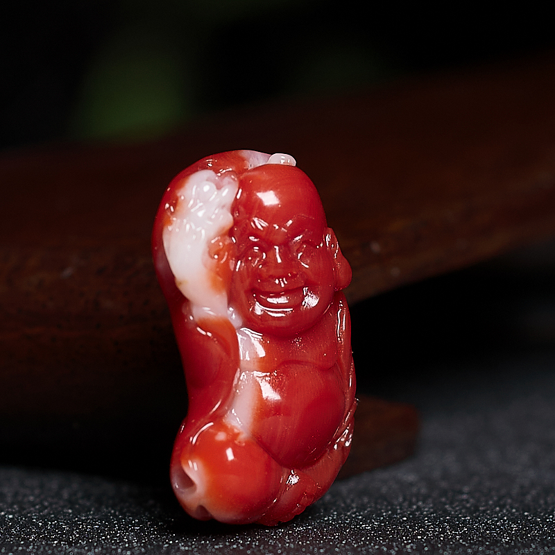 • 阿卡牛血红珊瑚弥勒佛吊坠