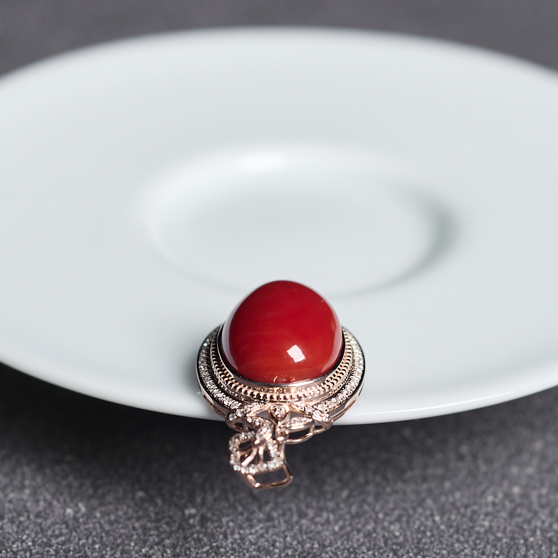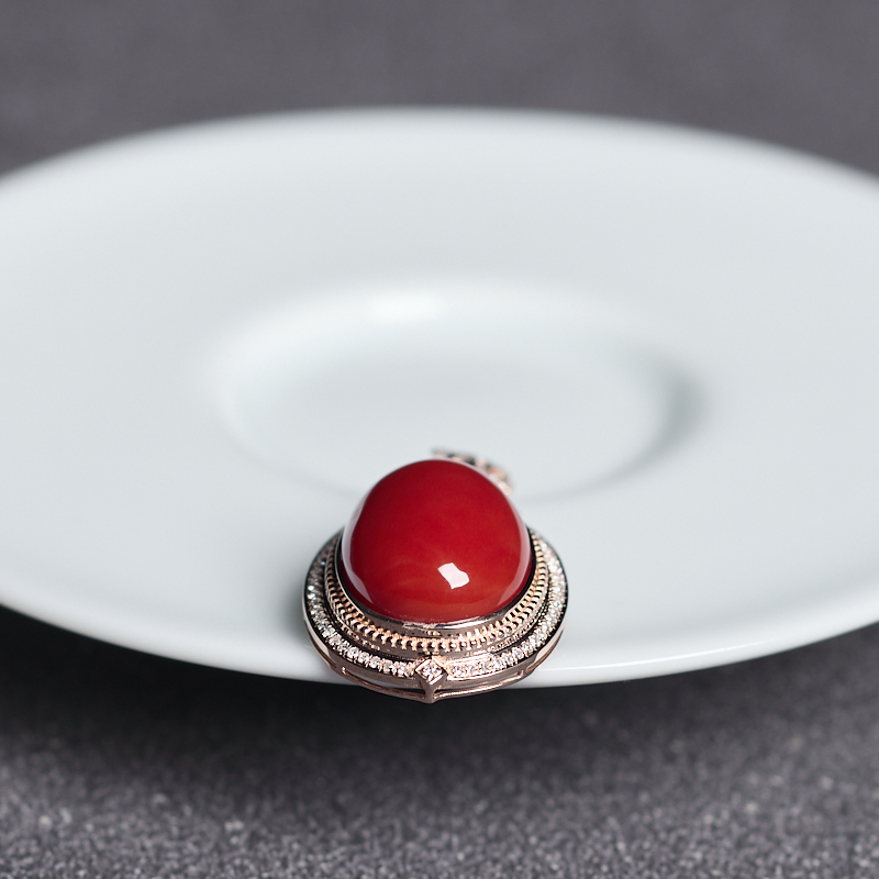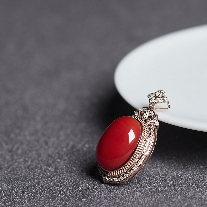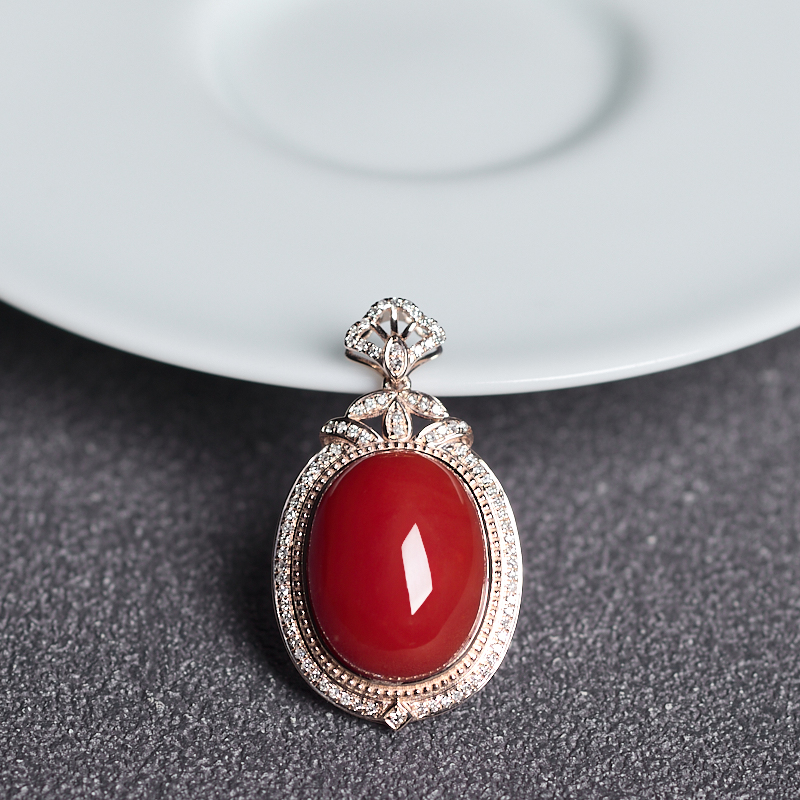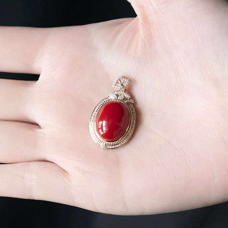 • 18K阿卡牛血红珊瑚吊坠