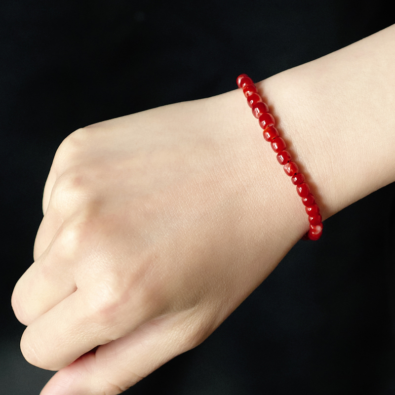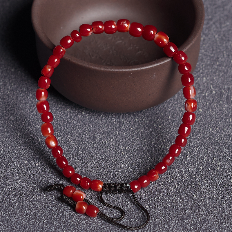 • 阿卡牛血红珊瑚桶珠单圈手串