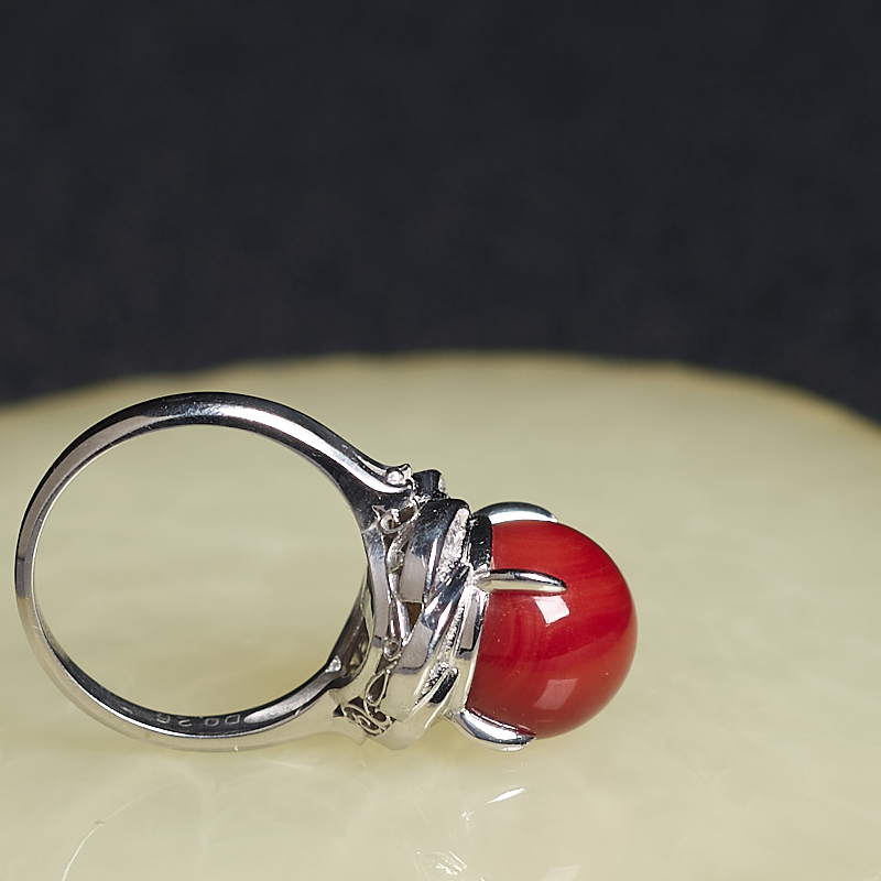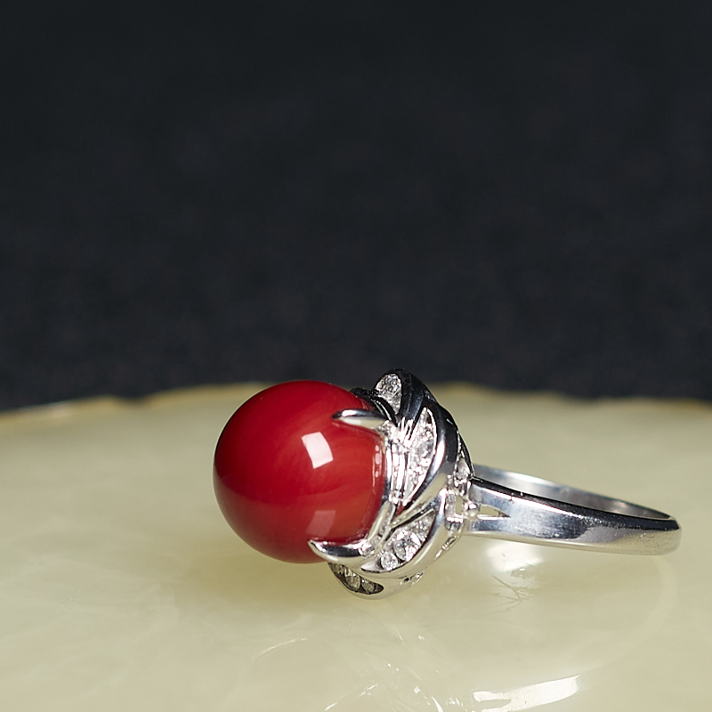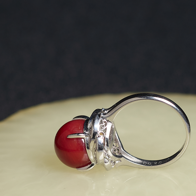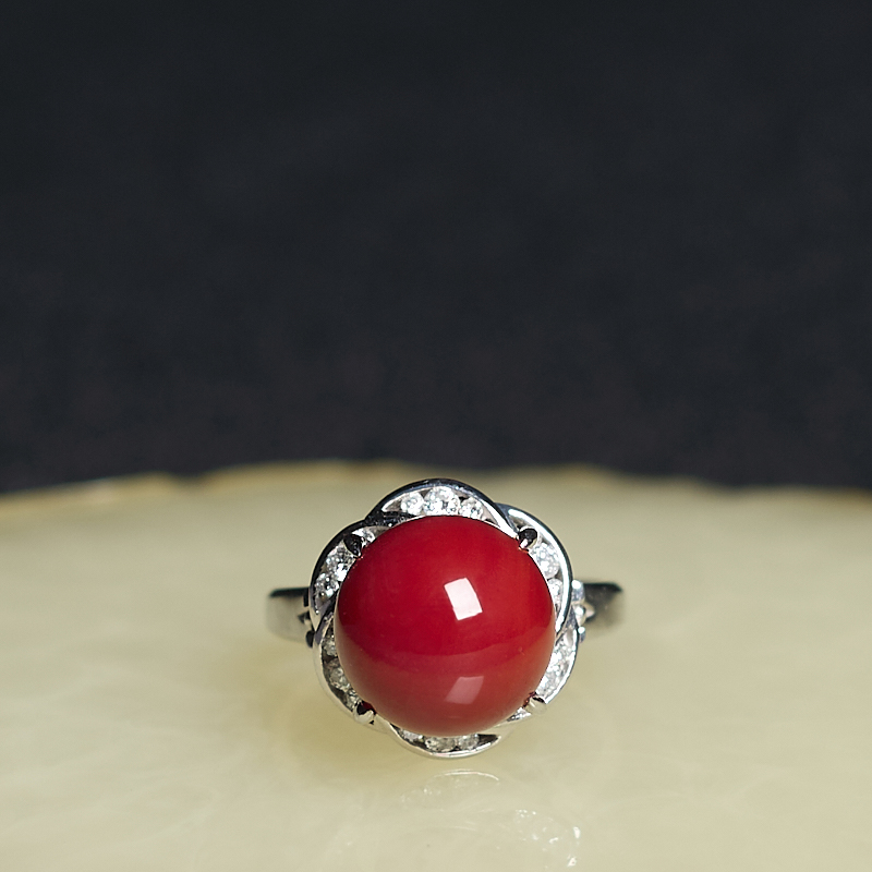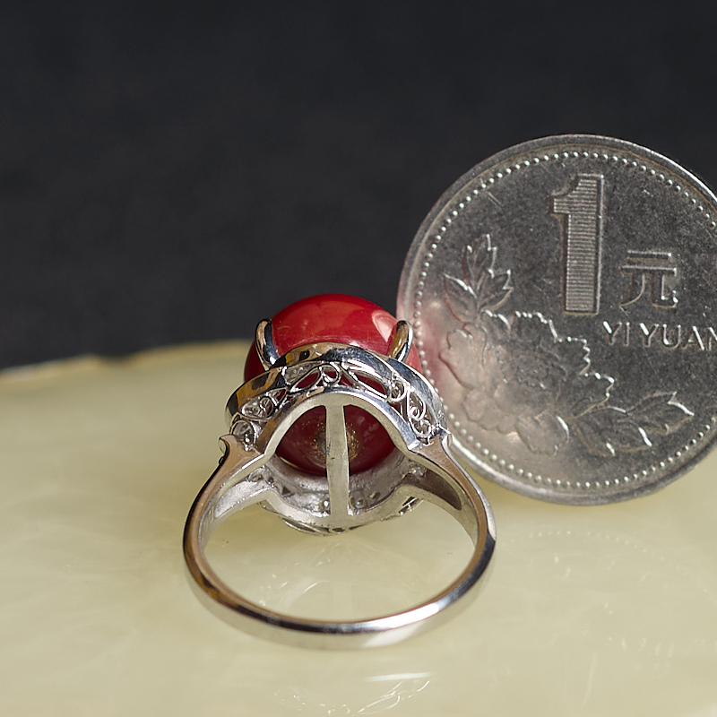 • 18K阿卡牛血红珊瑚圆珠戒指