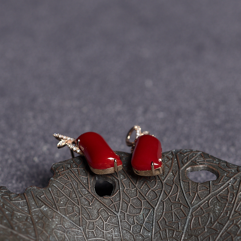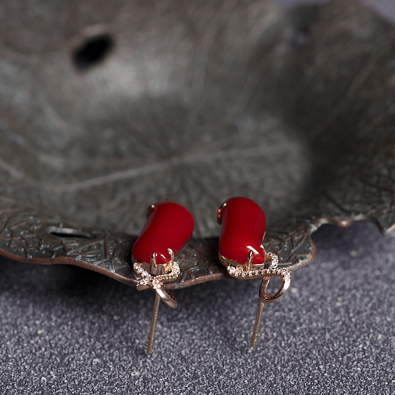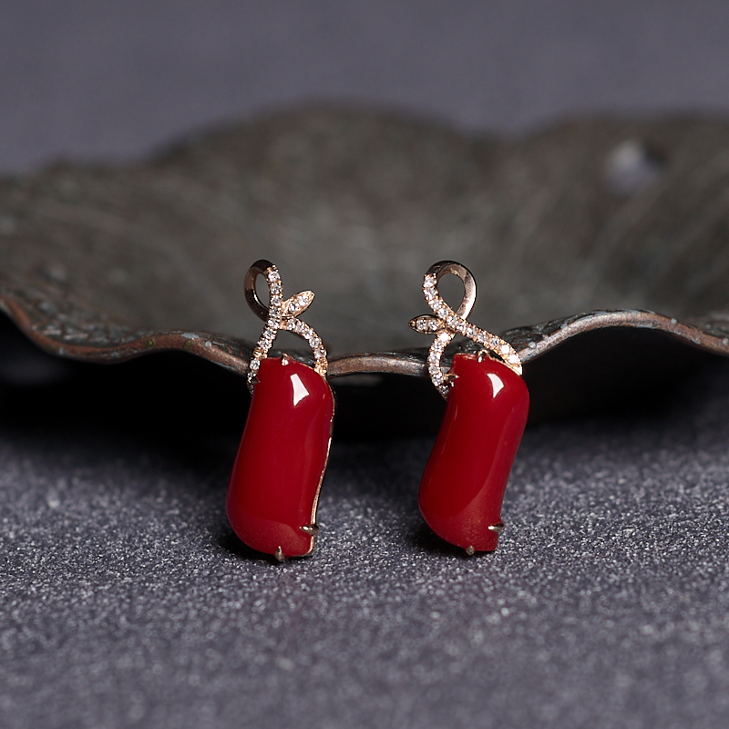 • [名  称] 18K阿卡牛血红珊瑚随形耳钉